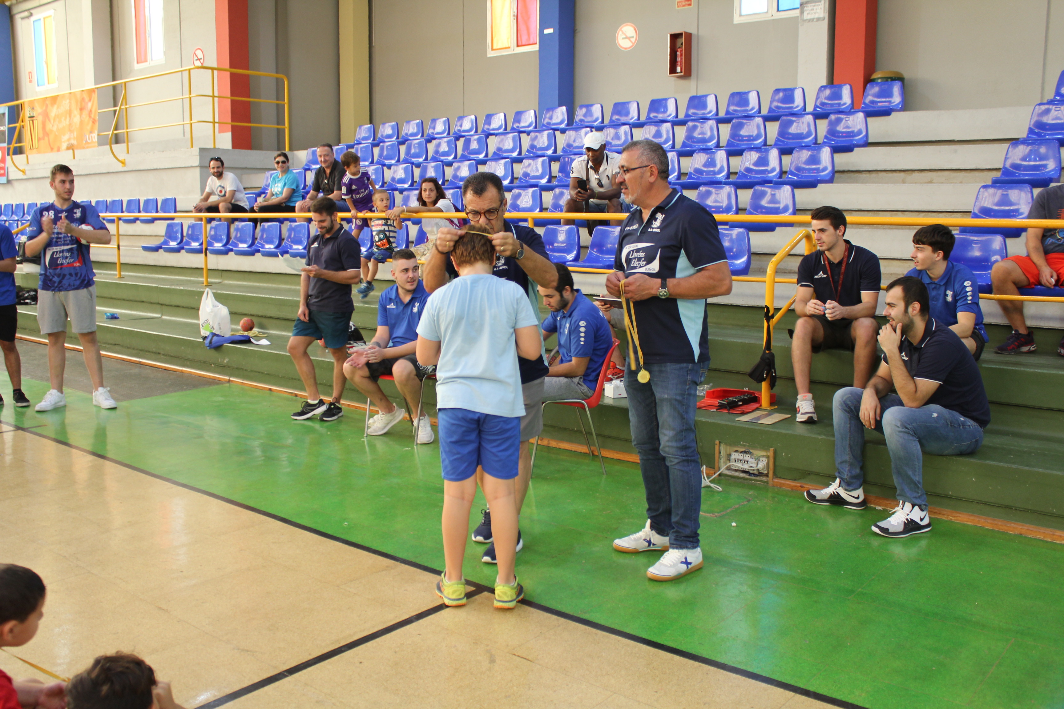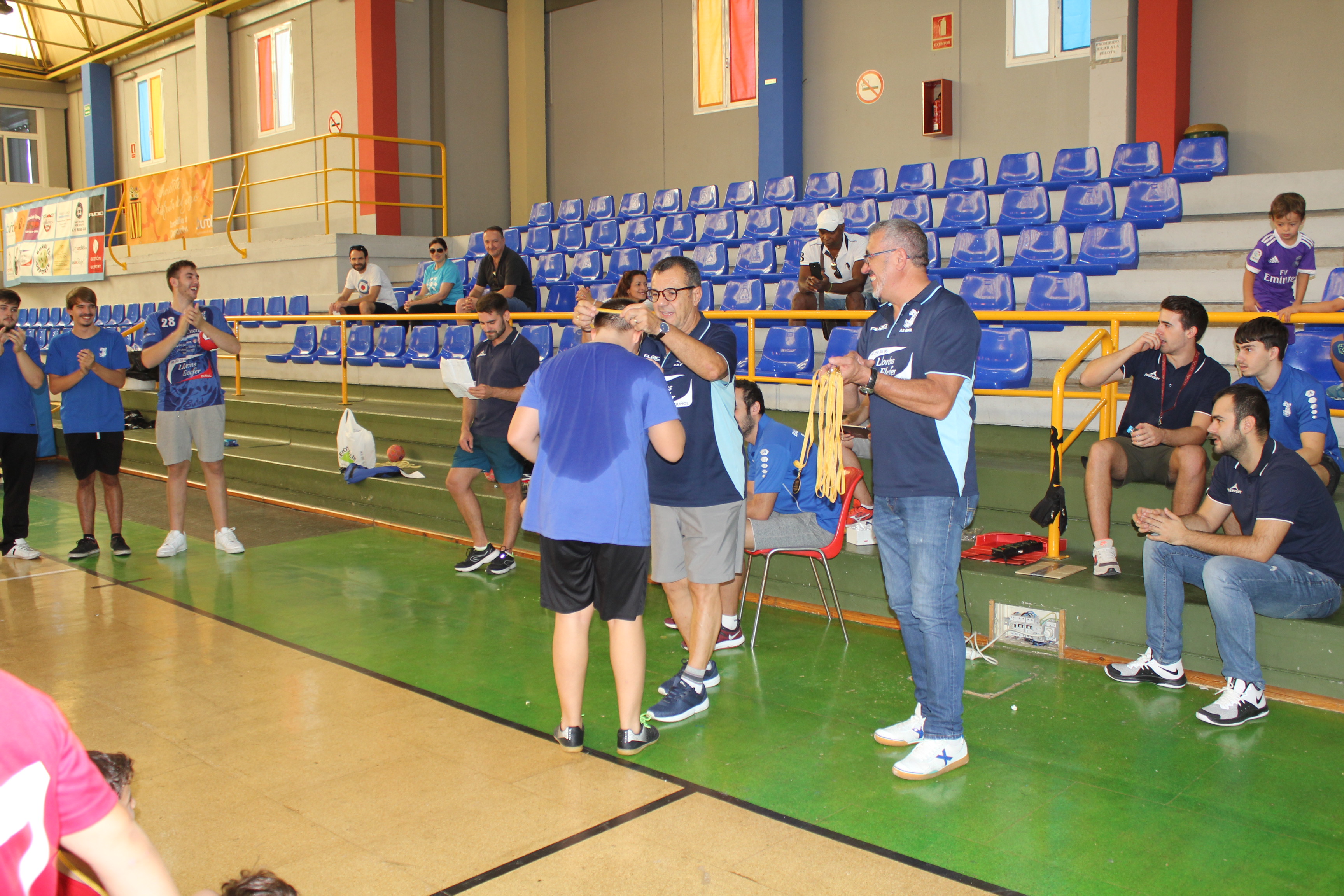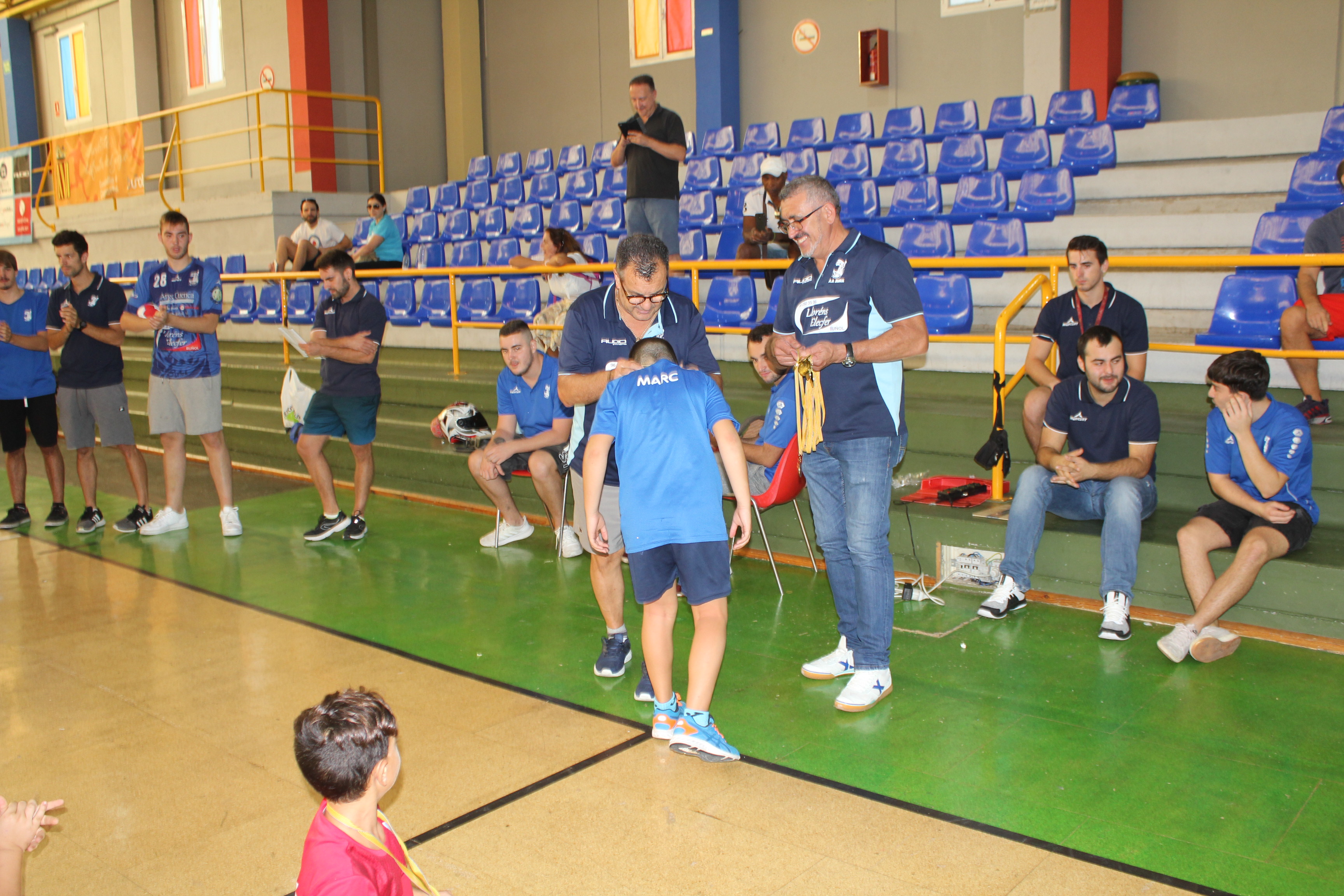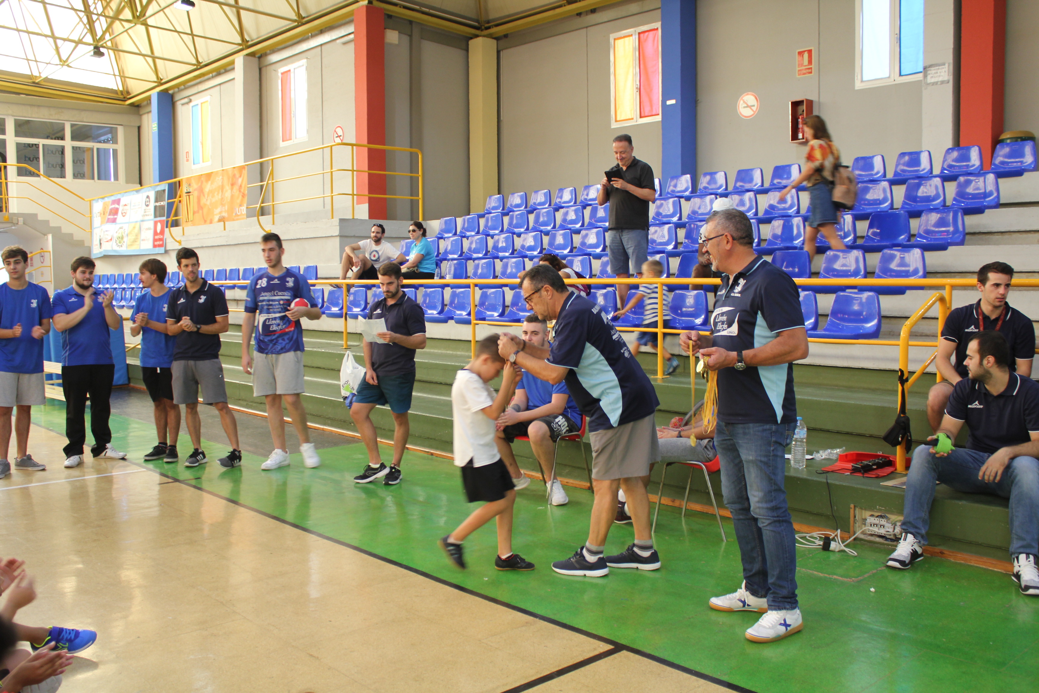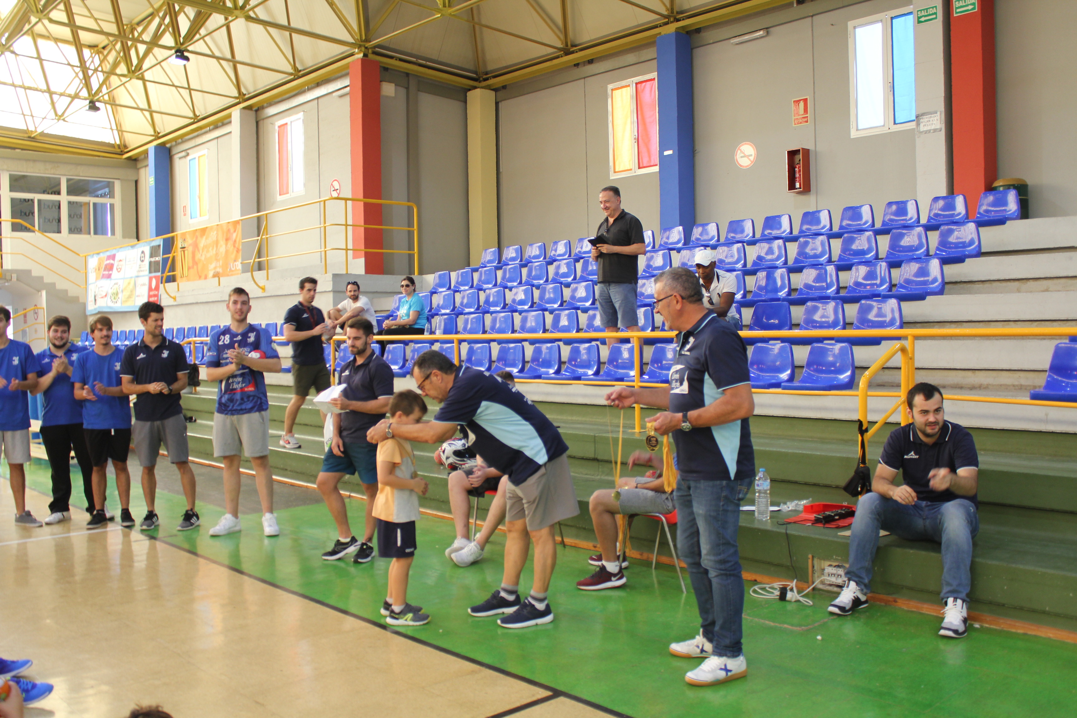 Al término del campeonato, el presidente del Club, Pedro Vallés, junto a Venancio Galarza, miembro de la Junta Directiva, les hicieron entrega de las medallas a todos los participantes de esta nueva edición del Mini-Handball.