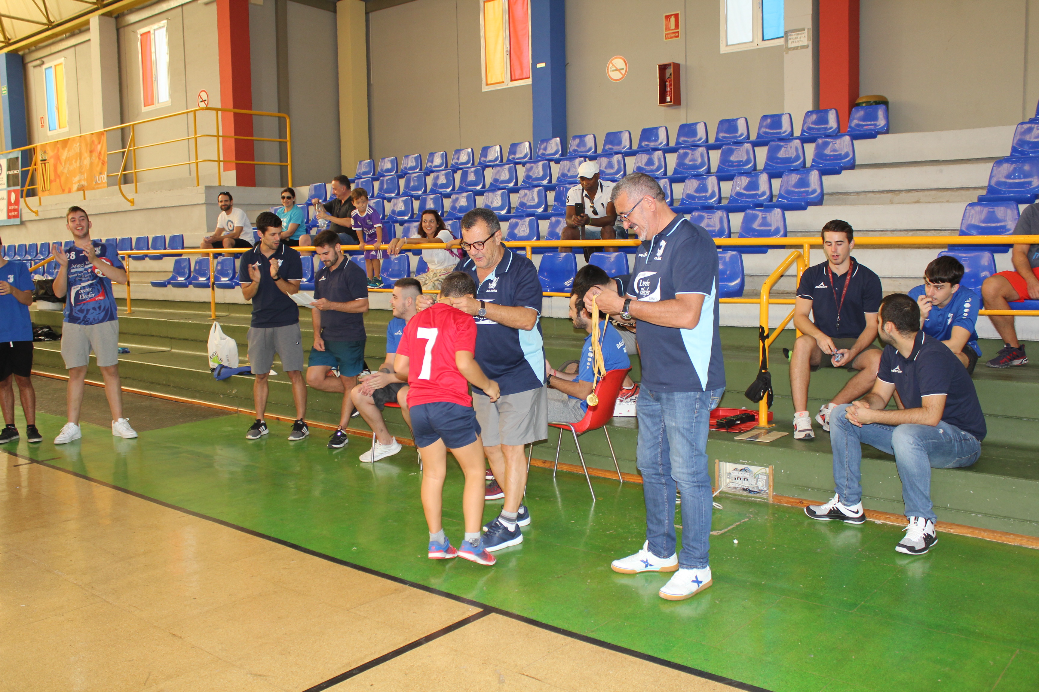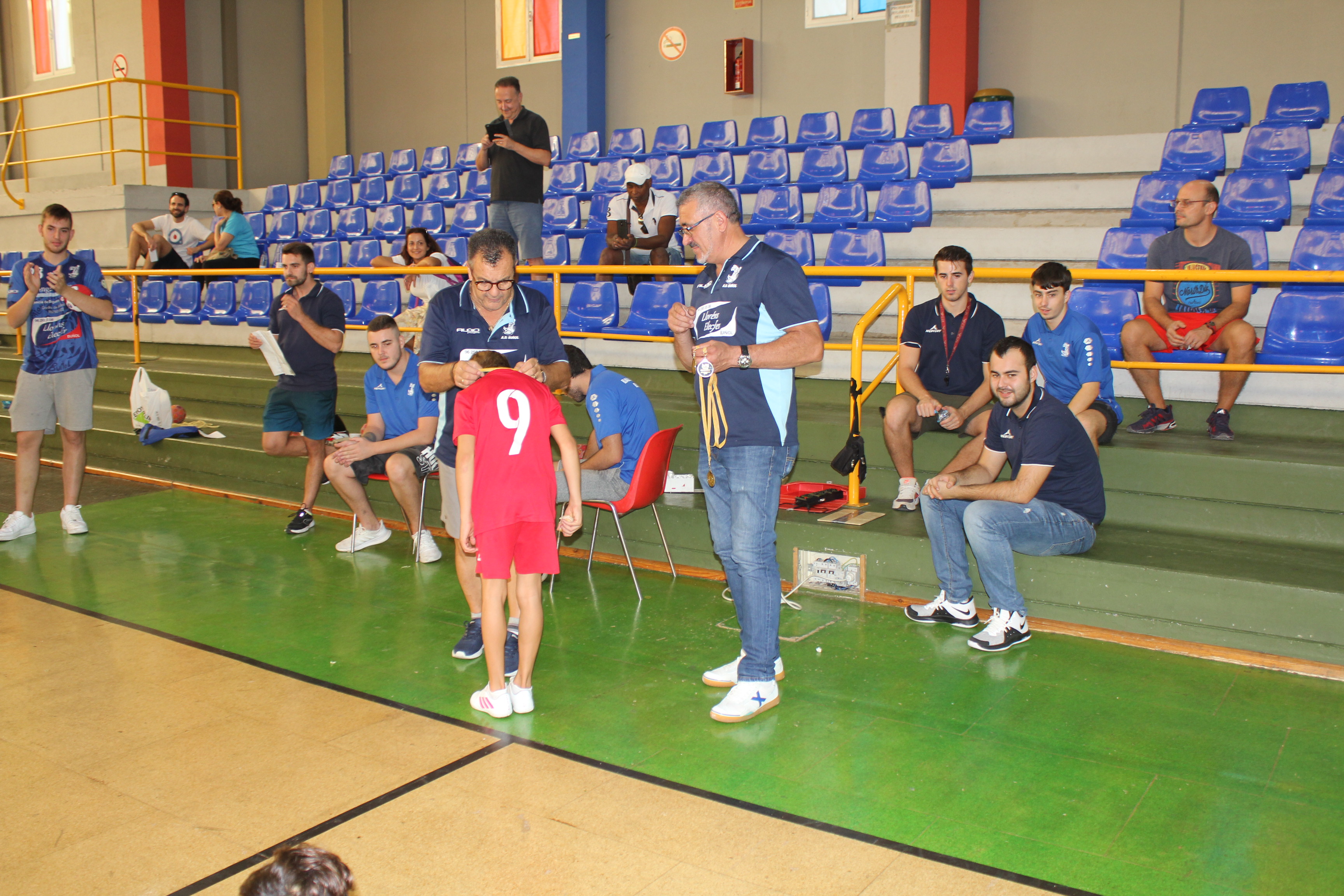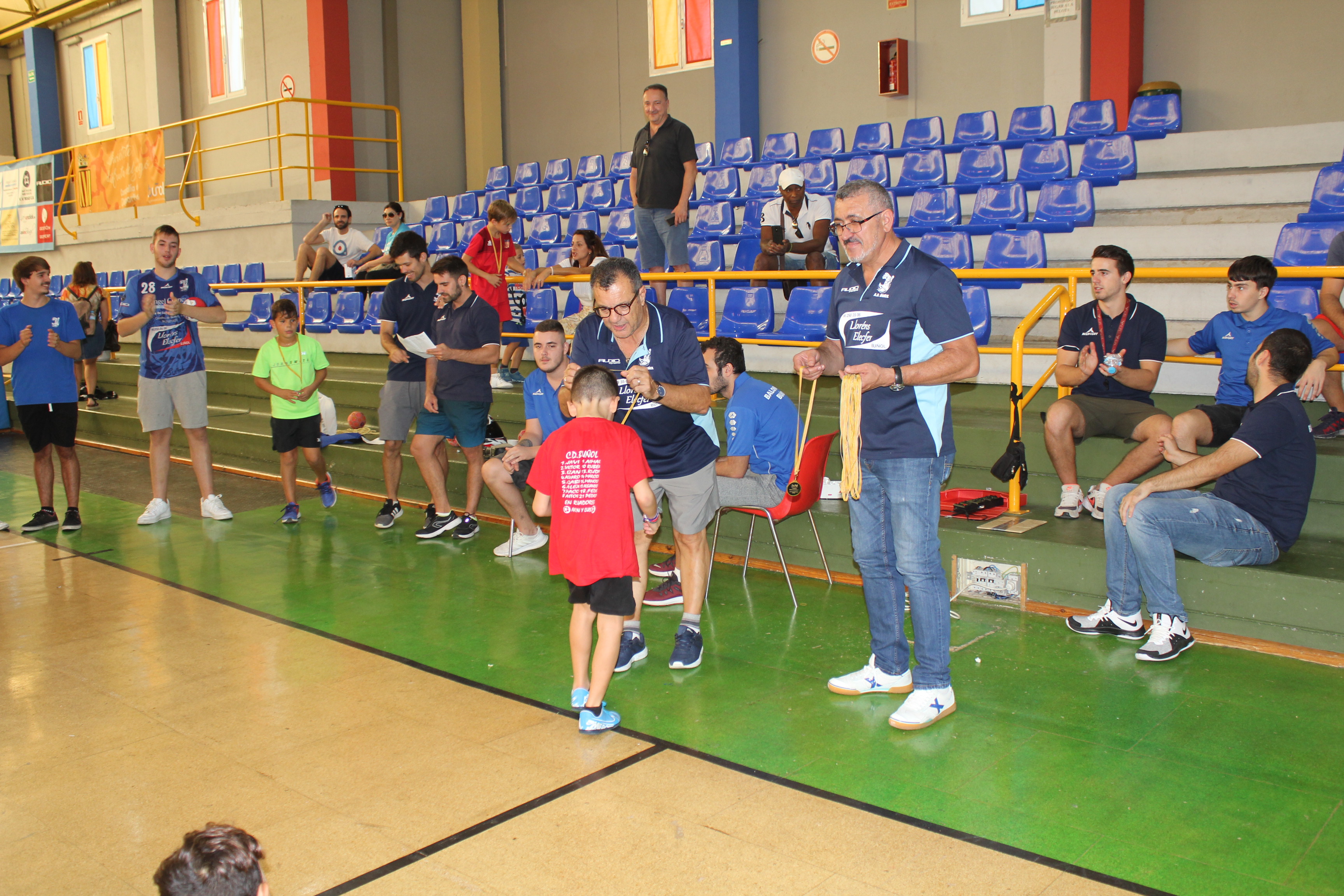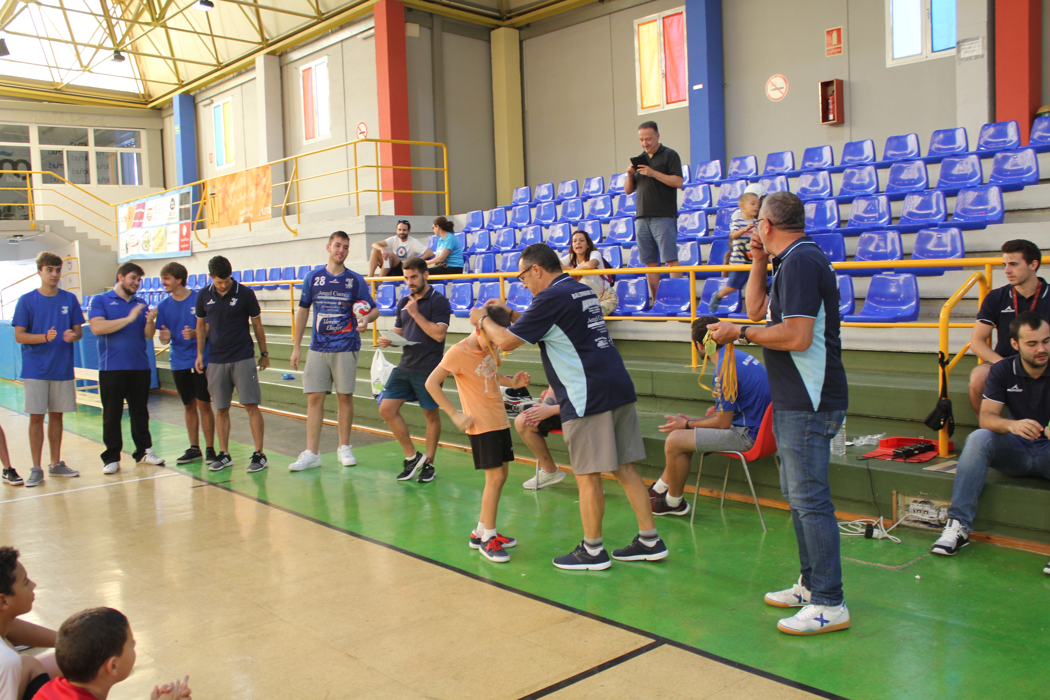 Al término del campeonato, el presidente del Club, Pedro Vallés, junto a Venancio Galarza, miembro de la Junta Directiva, les hicieron entrega de las medallas a todos los participantes de esta nueva edición del Mini-Handball.