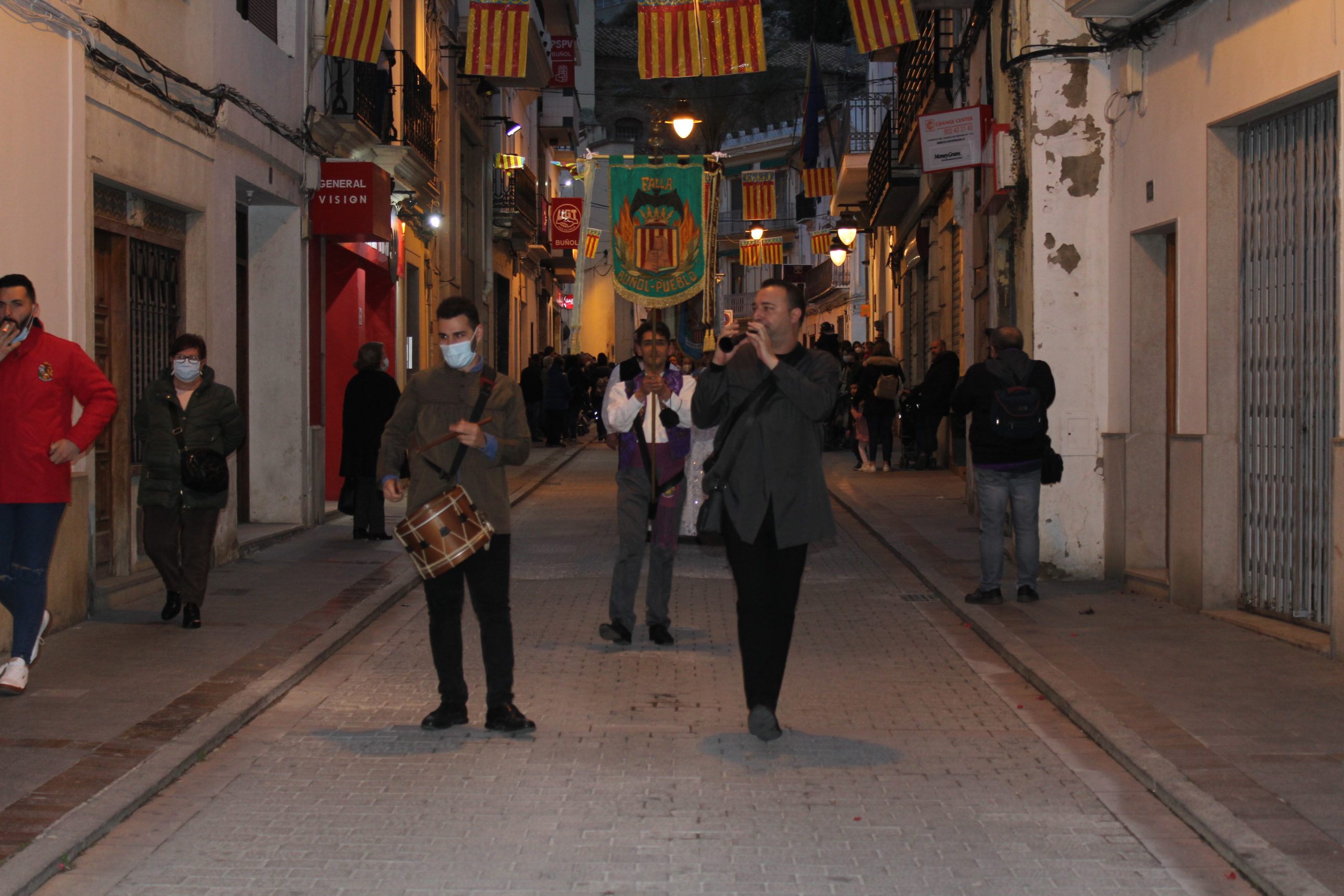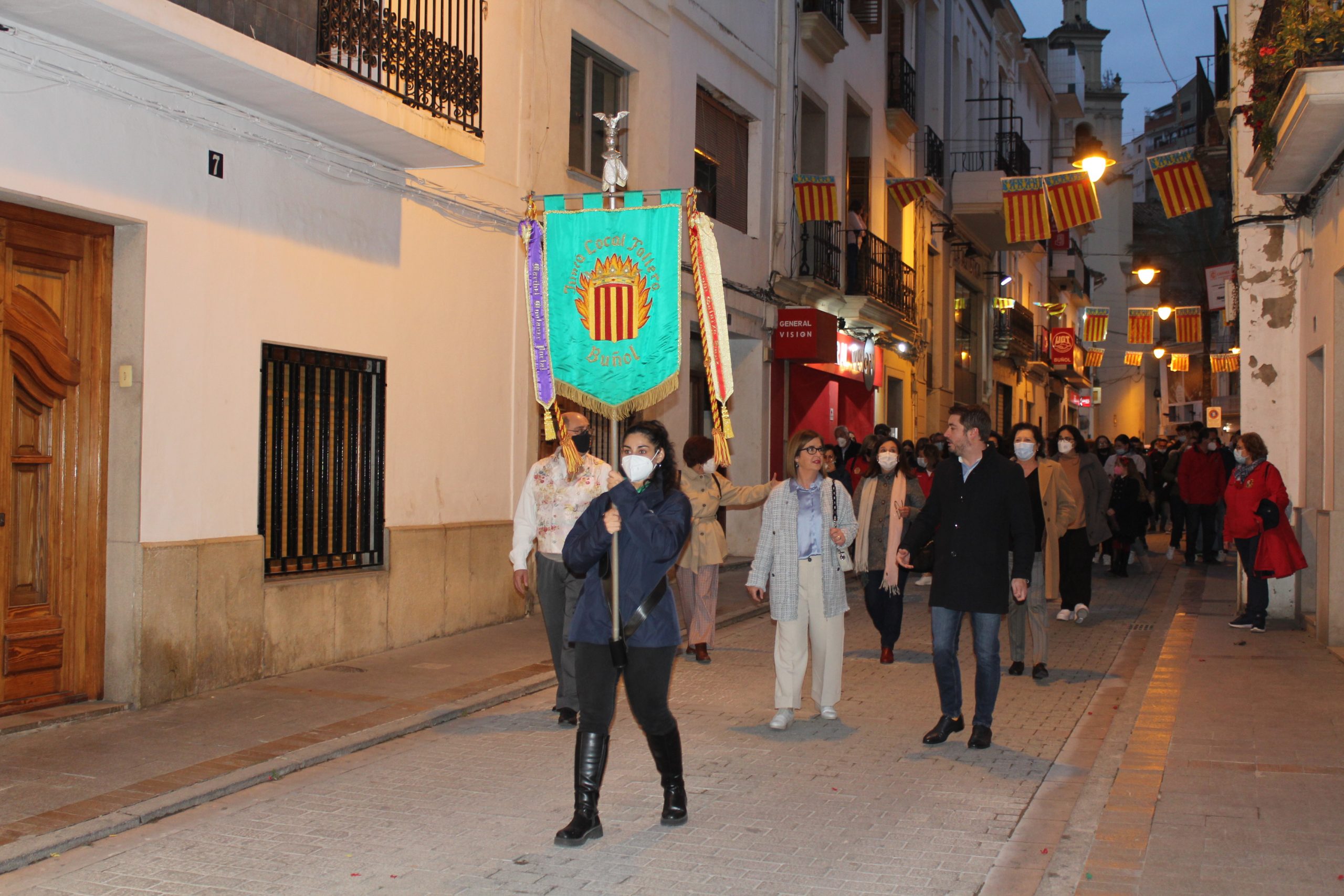 Gran expectación y sentimiento pudieron verse entre las calles de la localidad a partir de las 18h. Las cinco comisiones falleras y la Junta Local Fallera de Buñol, representada por su presidente, Indalecio Zanón, el concejal de Cultura Popular, Rafa Pérez, y la Alcaldesa de la localidad, Juncal Carrascosa, desfilaron desde la Avenida de la Violeta hasta la Plaza del Pueblo. Allí juntos aclamaron la llegada de las fiestas y desearon que todos los vecinos puedan disfrutar en armonía de unas fiestas tan deseadas.