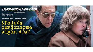 - Sinopsis: Sigue la historia de Lee Israel, una respetada biógrafa en decadencia que comienza a falsificar cartas de escritores y celebridades fallecidas con el fin de pagar el alquiler. Cuando las falsificaciones empiezan a levantar sospechas, Israel roba y vende las verdaderas cartas de los archivos sin saber que el FBI está investigando el asunto. (FILMAFFINITY)