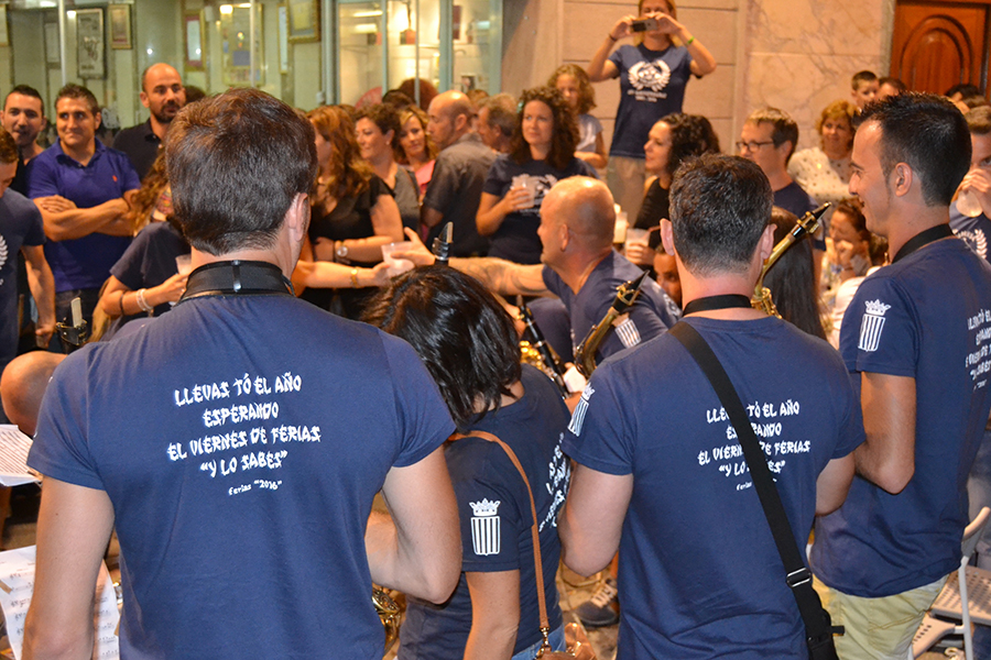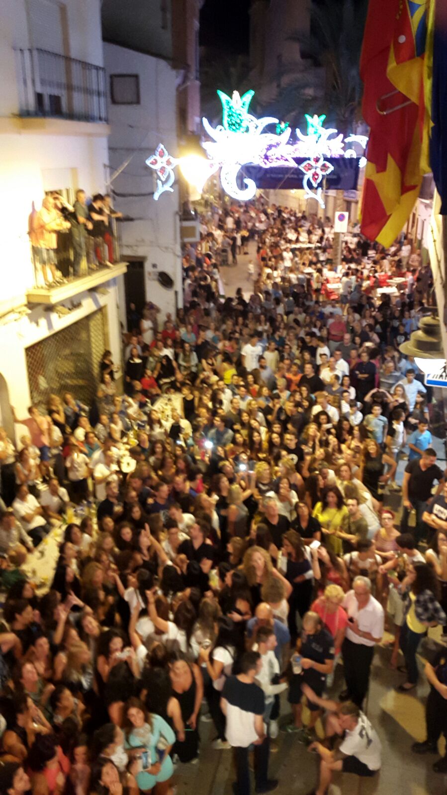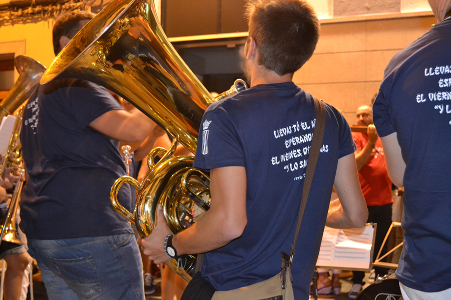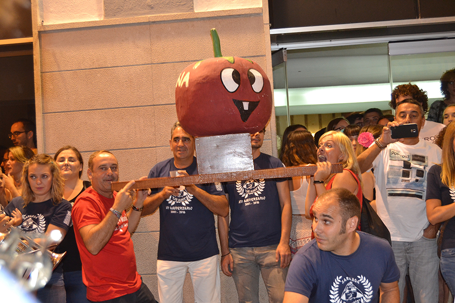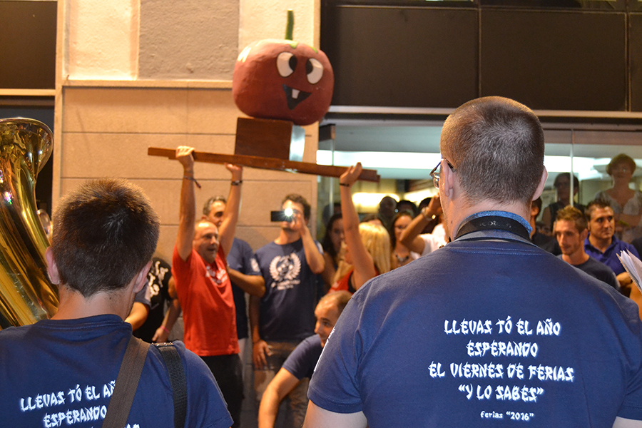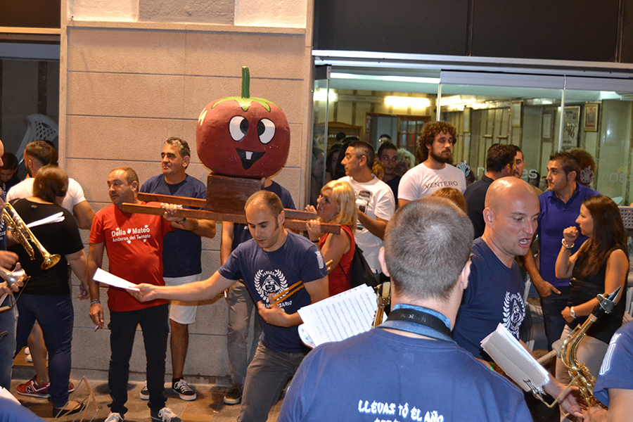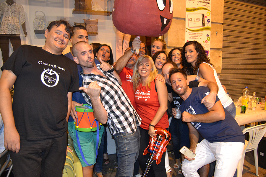 Finalmente, las cenas callejeras alrededor de la Plaza del Pueblo se convirtieron en protagonistas, con la excepcional Xaranga Los Xinos amenizando la noche, que concluyó con el himno a Buñol desde el balcón del Ayuntamiento y el pasacalle del Tomate hacia el recinto ferial. Mientras, en la Plaza del Pueblo comenzaba la discomóvil.