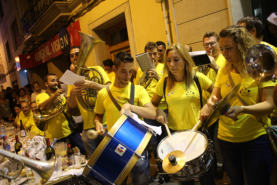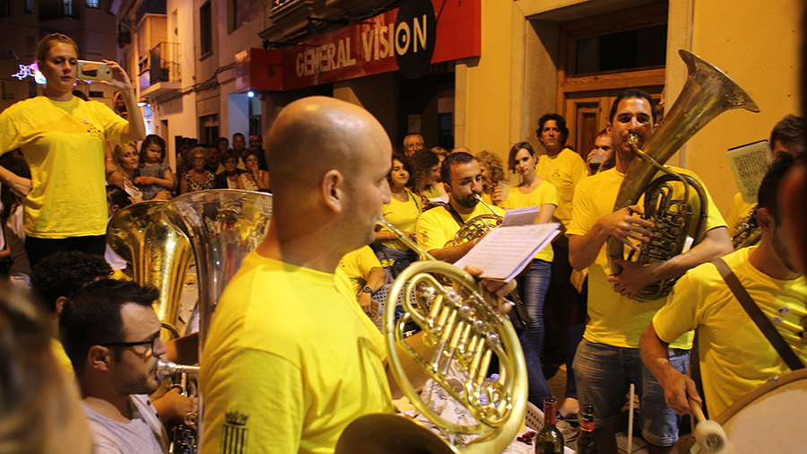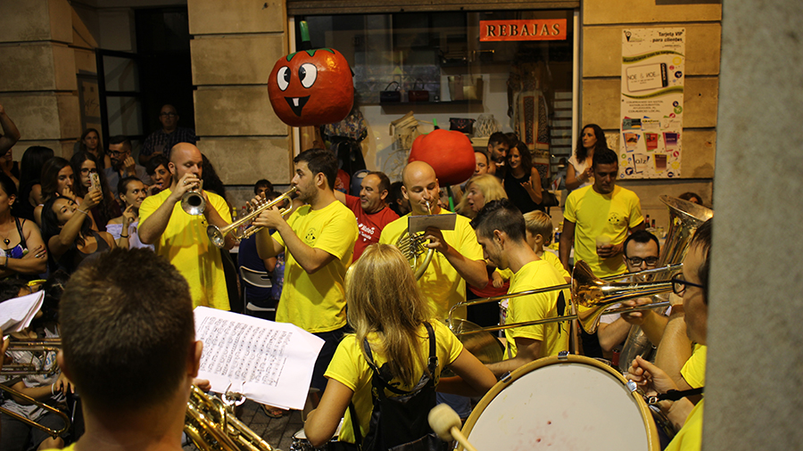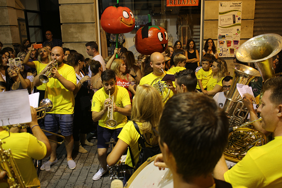 Posteriormente, la Xaranga Los Xinos, encargada de amenizar la fiesta en la plaza del pueblo y acompañar al «bautizo del tomate», celebró una noche especial, homenaje al recientemente fallecido músico y compañero Juan Carlos Máñez «Panchito». En lugar de la clásica charanga de otros años, Los Xinos interpretaron varios pasodobles, que era lo que más le gustaba. Finalmente, en la puerta del Ayuntamiento, sin subir al balcón como años atrás, y tras dedicarle unas palabras, interpretaron un emotivo himno a Buñol, que podéis ver en el vídeo de más abajo.