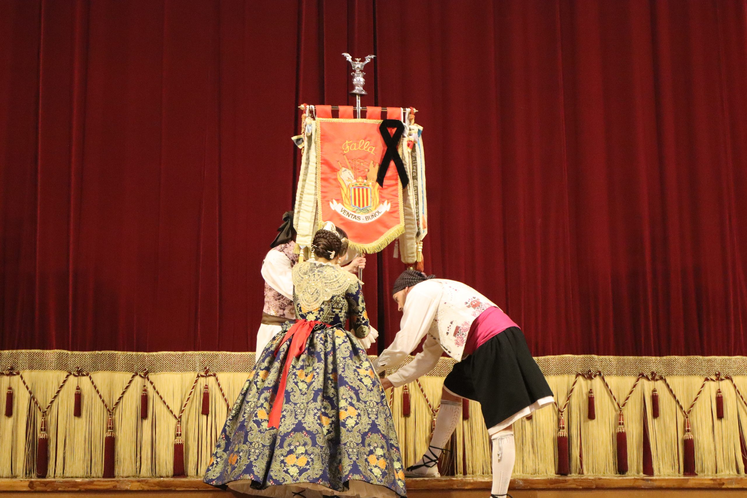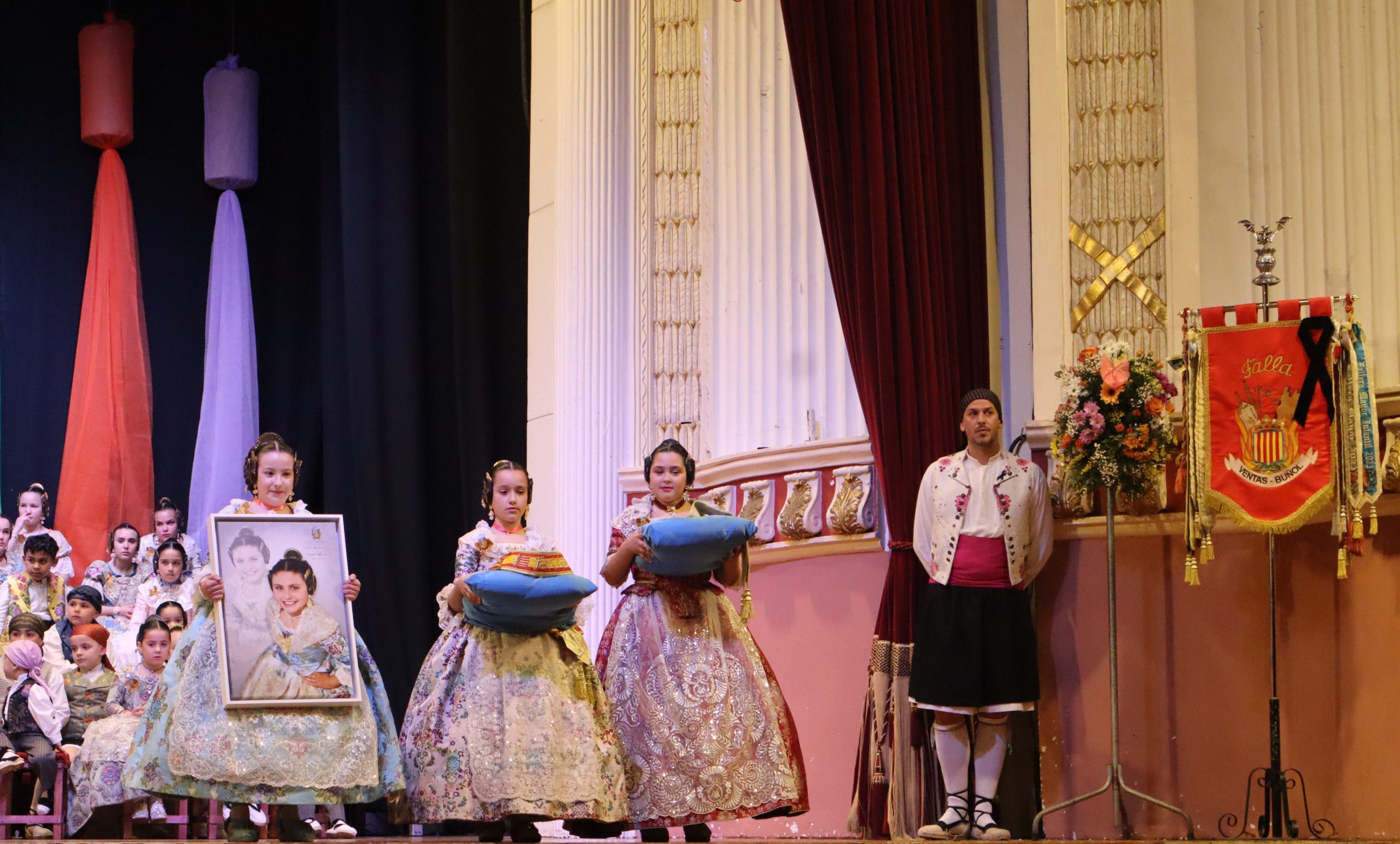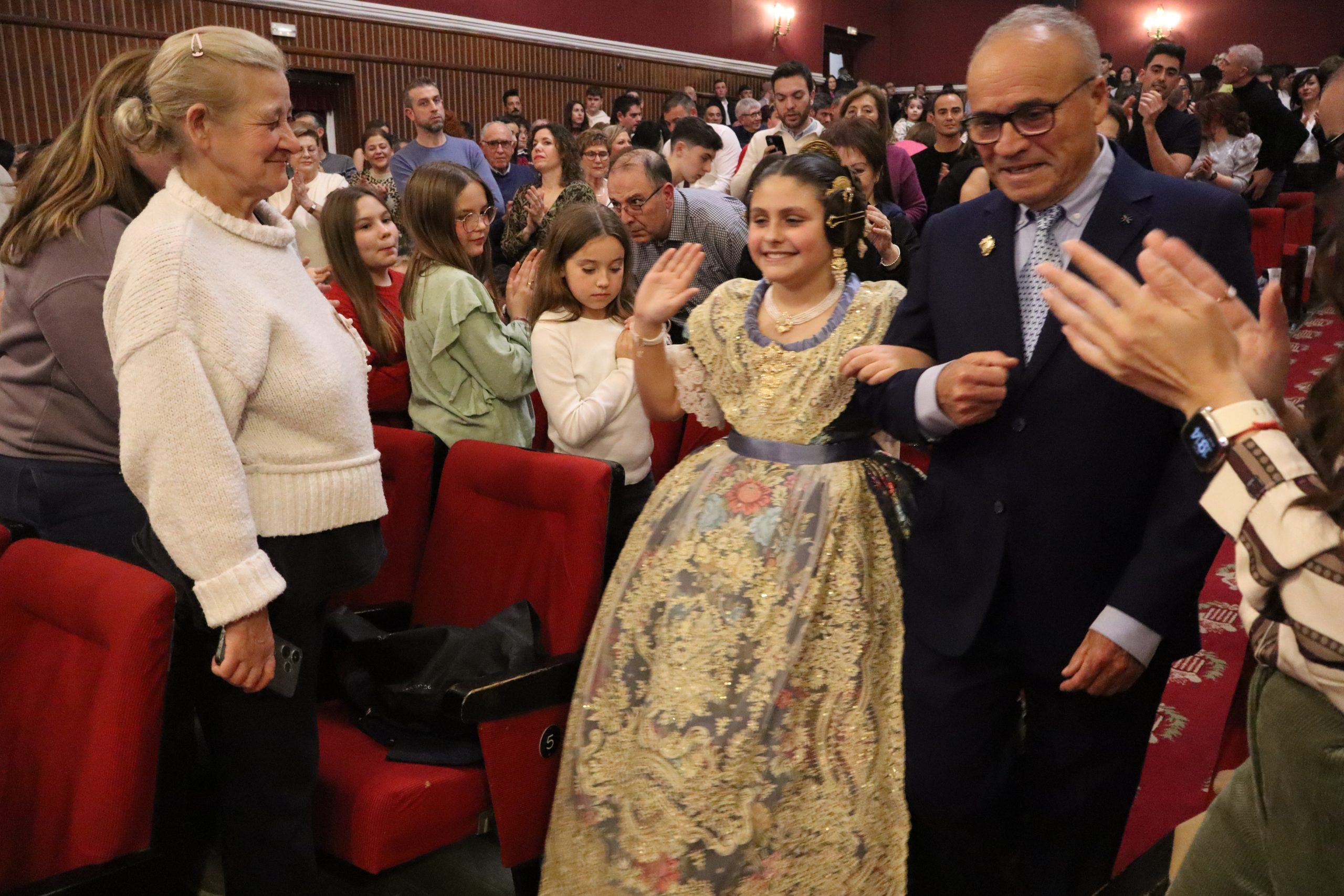 El acto comenzó en el Teatro Montecarlo de la localidad, con unas emotivas palabras en memoria de Nuria Carreño, miembro destacada de la falla y que nos dejó hace poco más de un mes. Más tarde, fueron las más pequeñas y pequeños de la comisión quienes fueron saliendo en parejas hasta completar un escenario que le dio la bienvenida a Carmen Valls, como Fallera Mayor infantil de Las Ventas. Carmen cogía el testigo de Paula Carreño que dedicó unas emocionadas palabras en su despedida. Por su parte, Carmen dedicó al público y a sus falleros y falleras un discurso optimista y lleno de energía, que es como pretende pasar estas fiestas. A Carmen la acompañará este año el nuevo presidente infantil, Marc Tovar Ortiz, que también fue presentado en sociedad.