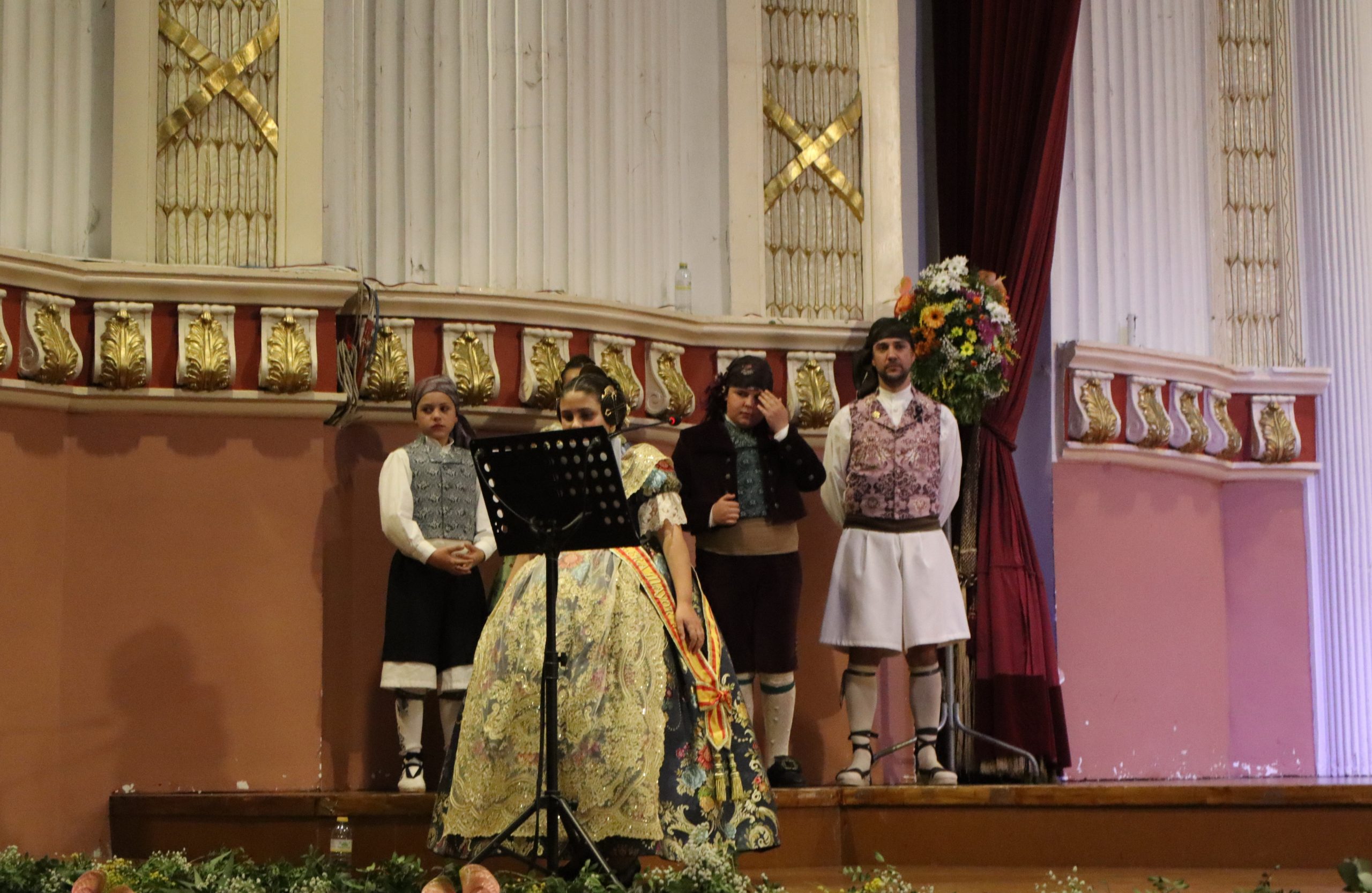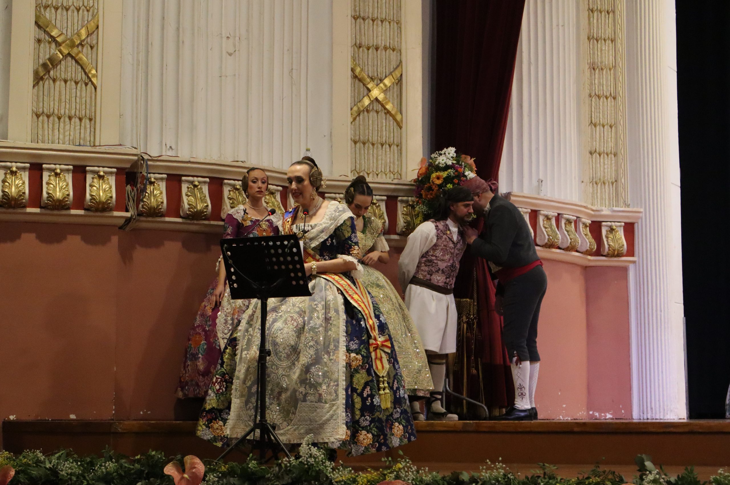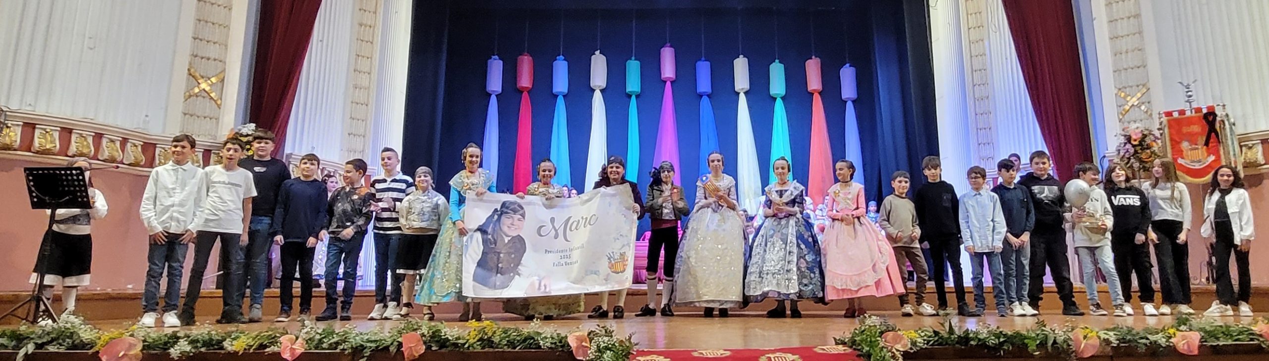 El acto comenzó en el Teatro Montecarlo de la localidad, con unas emotivas palabras en memoria de Nuria Carreño, miembro destacada de la falla y que nos dejó hace poco más de un mes. Más tarde, fueron las más pequeñas y pequeños de la comisión quienes fueron saliendo en parejas hasta completar un escenario que le dio la bienvenida a Carmen Valls, como Fallera Mayor infantil de Las Ventas. Carmen cogía el testigo de Paula Carreño que dedicó unas emocionadas palabras en su despedida. Por su parte, Carmen dedicó al público y a sus falleros y falleras un discurso optimista y lleno de energía, que es como pretende pasar estas fiestas. A Carmen la acompañará este año el nuevo presidente infantil, Marc Tovar Ortiz, que también fue presentado en sociedad.