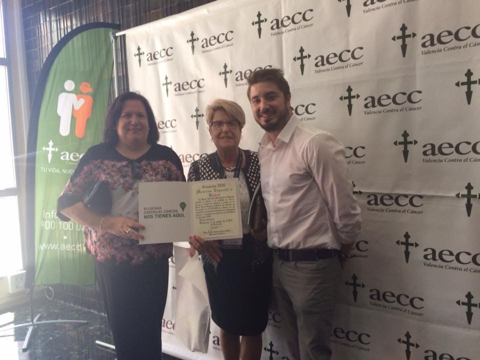 Para la junta local Aecc Buñol, ha sido un orgullo recibir una mención especial por la labor realizada durante el año pasado. Dicha mención se nos ha entregado esta mañana en el colegio de Médicos de Valencia, a la cual hemos asistido una representación de dicha junta y el Alcalde siempre dispuesto a todo lo que le pedimos. Gracias Rafa. Nos ha llamado la atención que el presidente de la Aecc nos haya nombrado a Buñol de entre 126 pueblos que estaban allí, por la gran participación entre habitantes y participantes en la RunCancer de este año, lo cual nos a alegrado infinitamente.