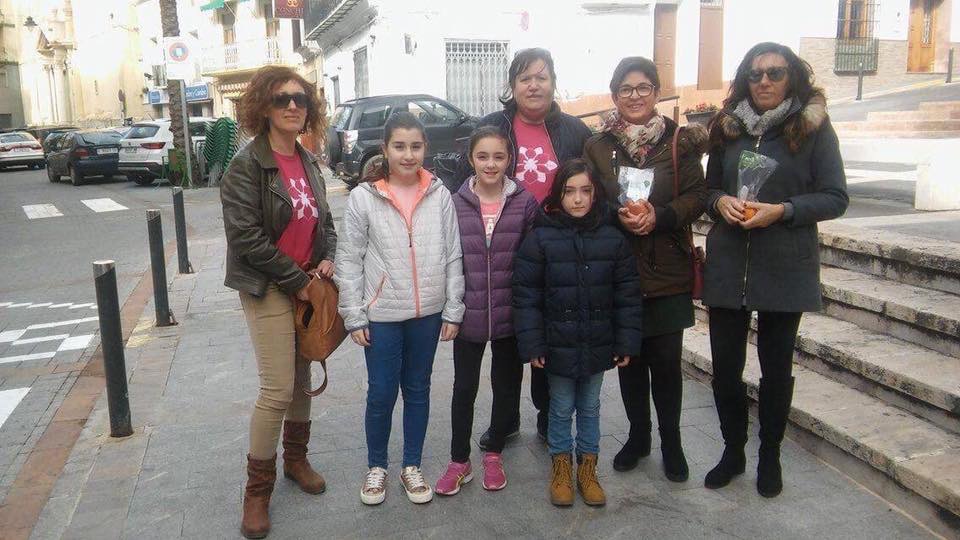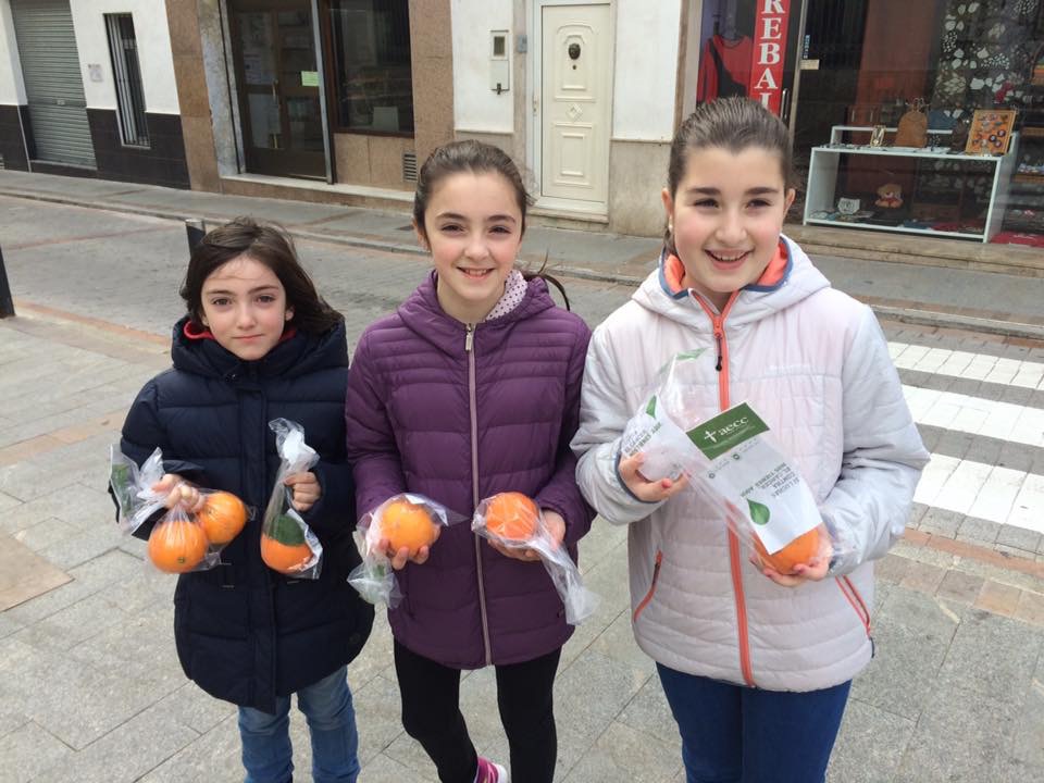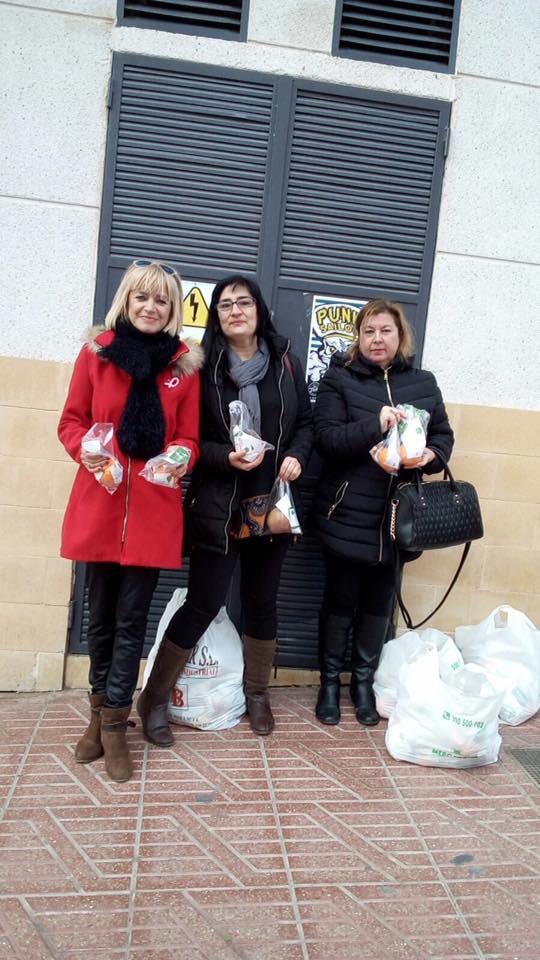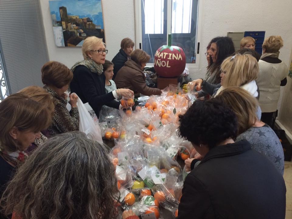 3 de Febrero, con motivo del día mundial de la lucha contra el cáncer, la junta y sus colaboradoras se dedican a distribuir la fruta en las bolsas.