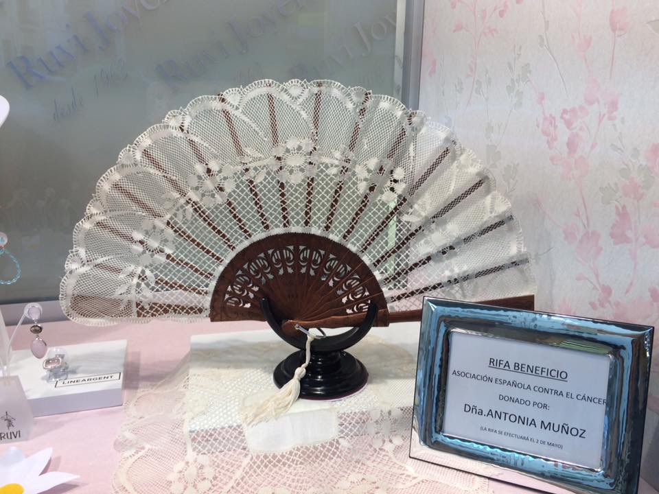 2 de Abril se nos hace entrega de un abanico de bolillos con pañuelo a juego para que sea rifado y los beneficios sean para la asociación.