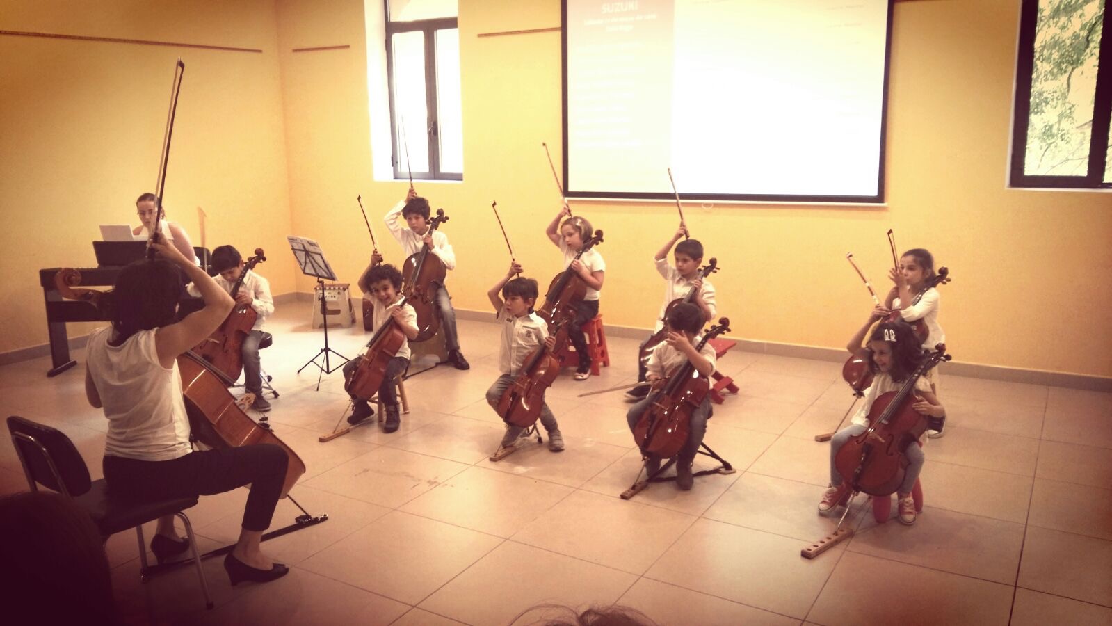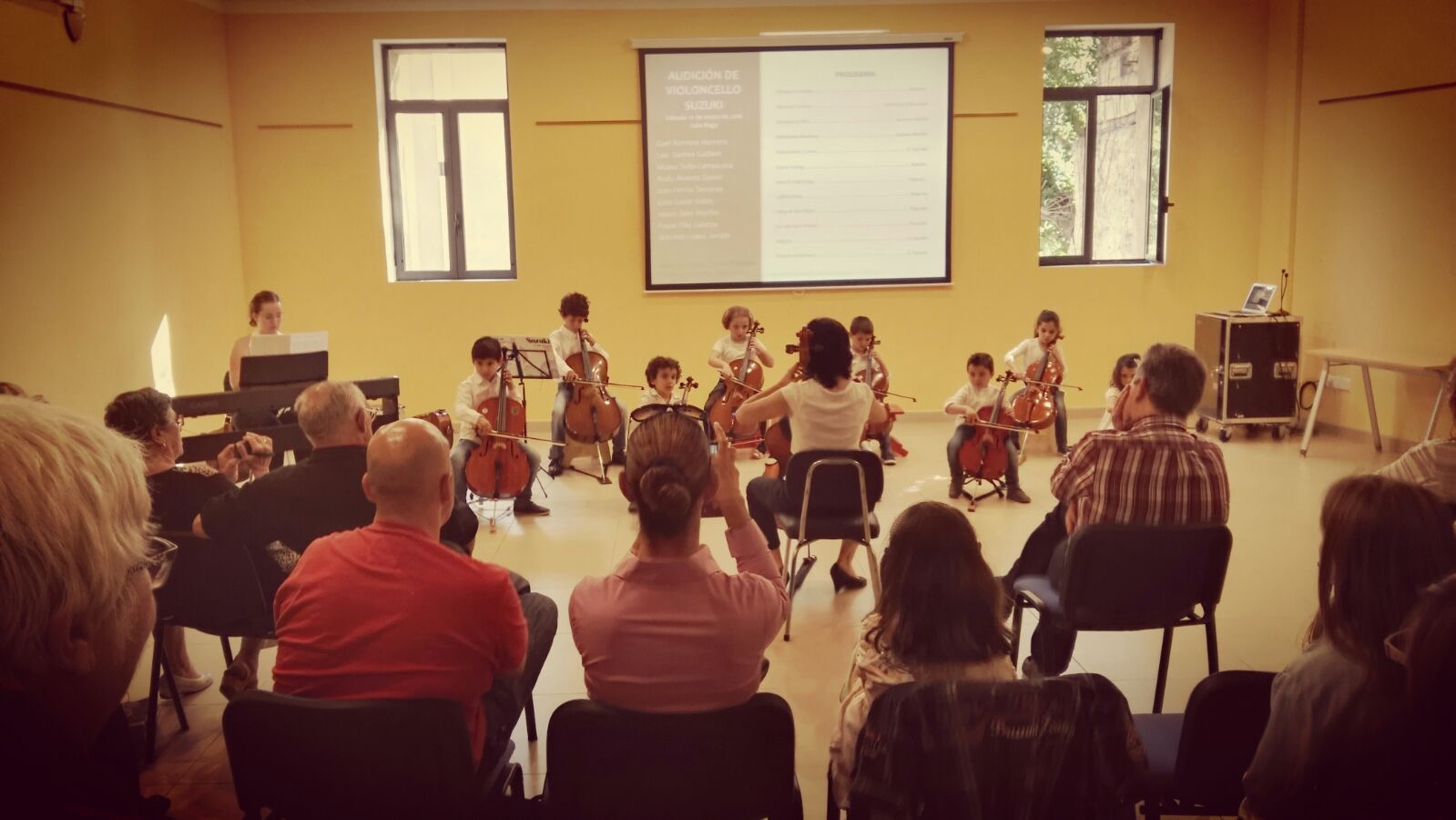 Ya el sábado por la mañana, se realizó un Taller introductorio al método Suzuki para niños a partir de 3 años acompañados de su papá o mamá a cargo de Maite Galarza en la Sala Raga. Para por la tarde, realizar una audición de los alumnos que habían participado.