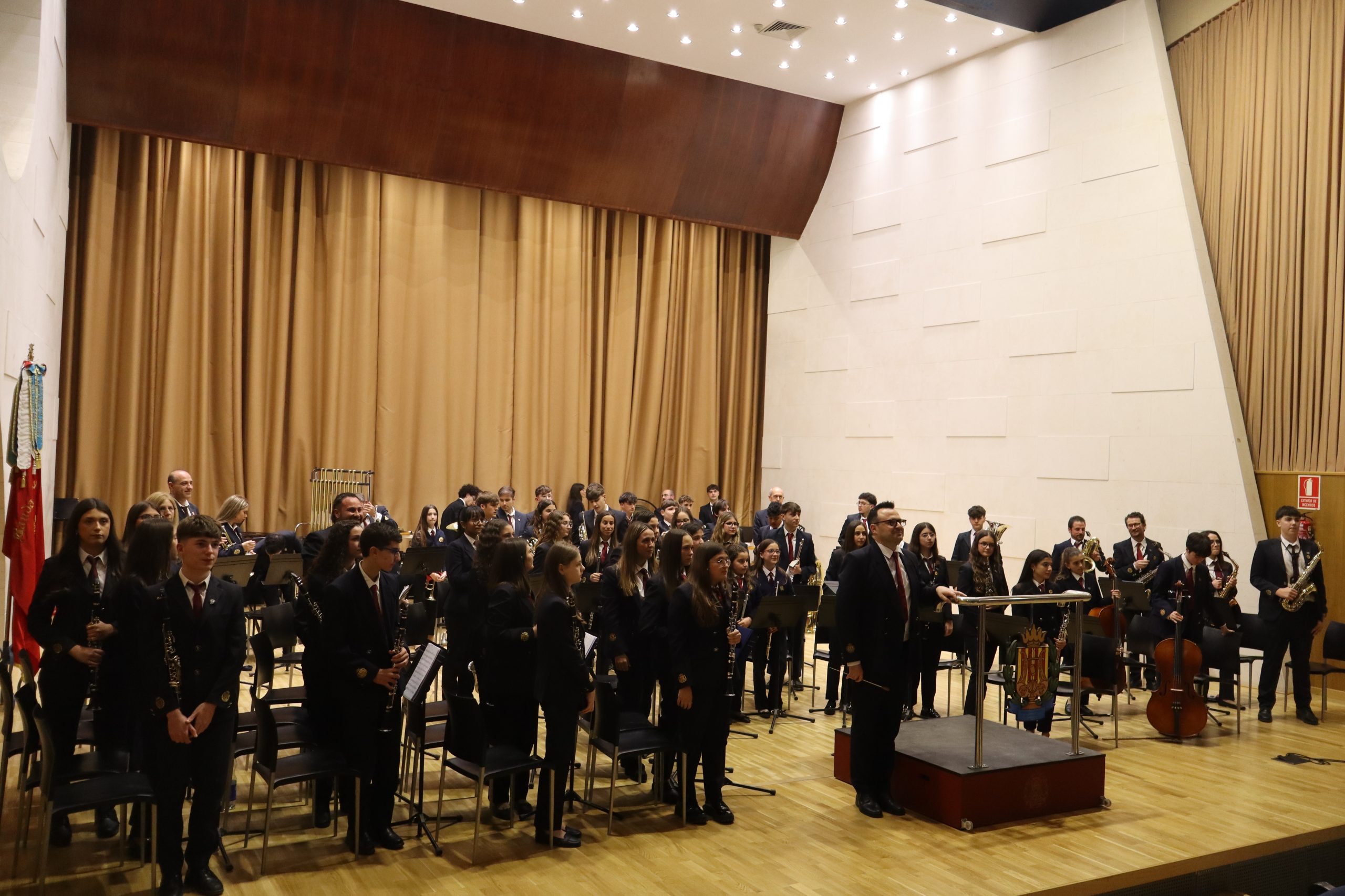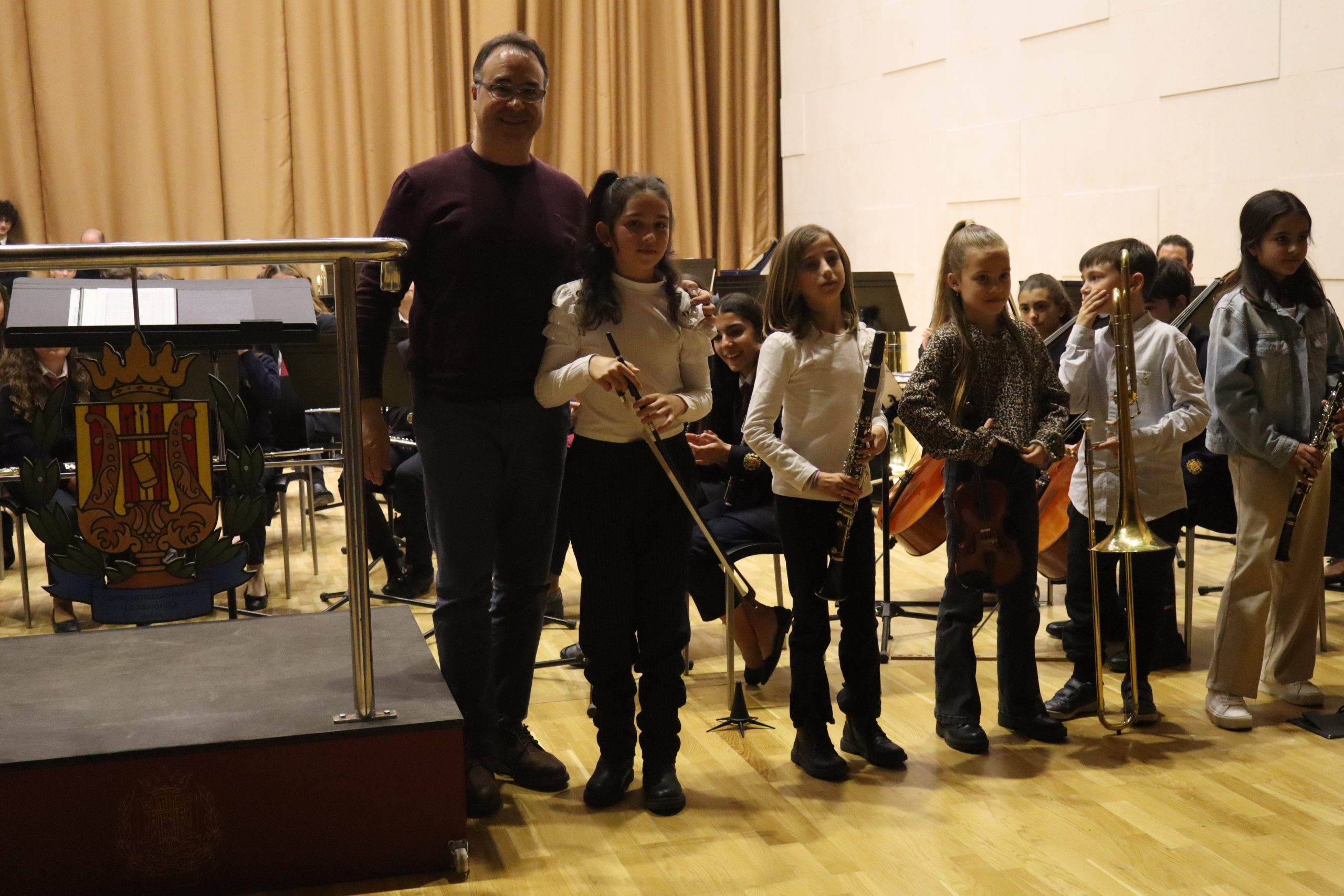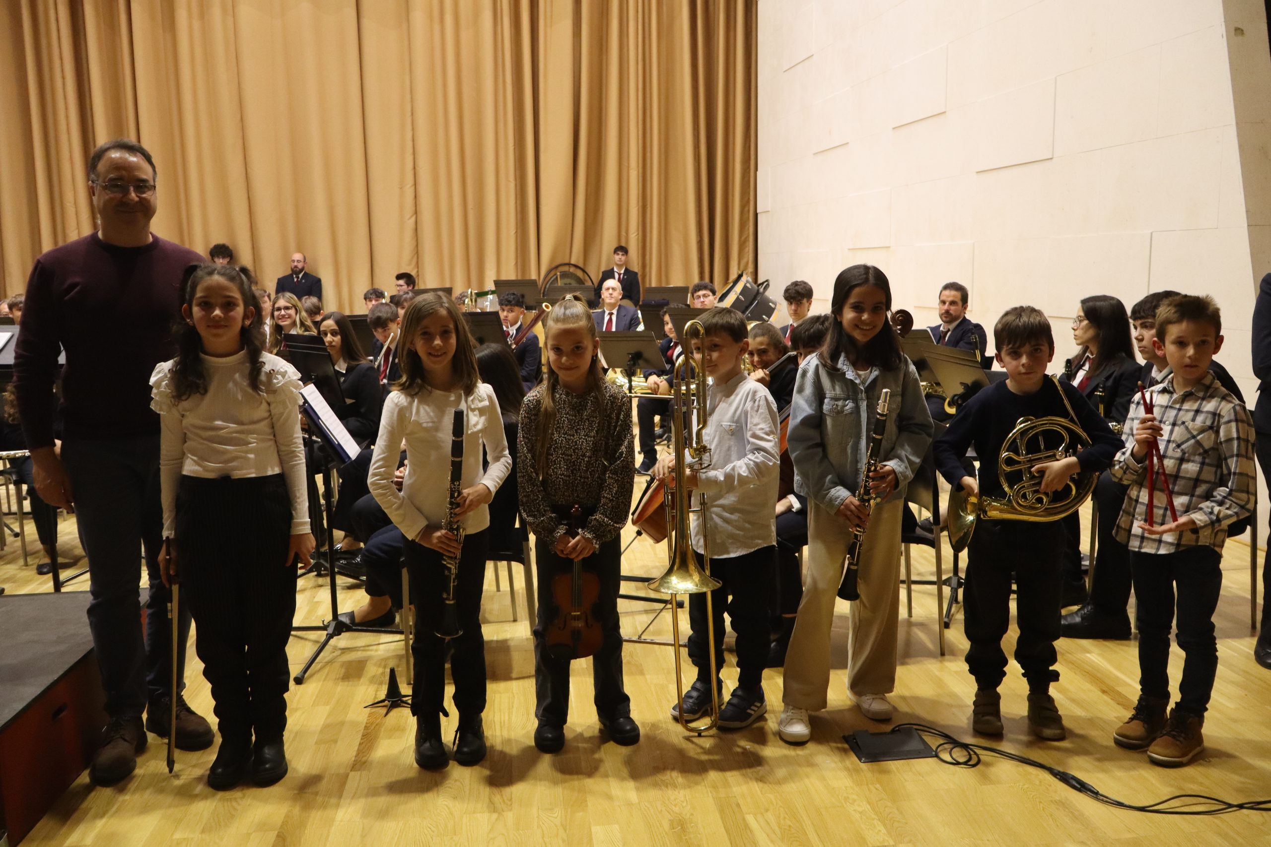 Otro momento destacado fue la entrega de instrumentos a los nuevos estudiantes de la Escuela de Música. Este acto simboliza el inicio de su formación musical y marca el comienzo de su trayectoria dentro de la Banda. Los alumnos, acompañados por sus familias y profesores, vivieron con gran ilusión este importante paso, que resalta el compromiso tanto de los educadores como de las familias con la enseñanza musical.