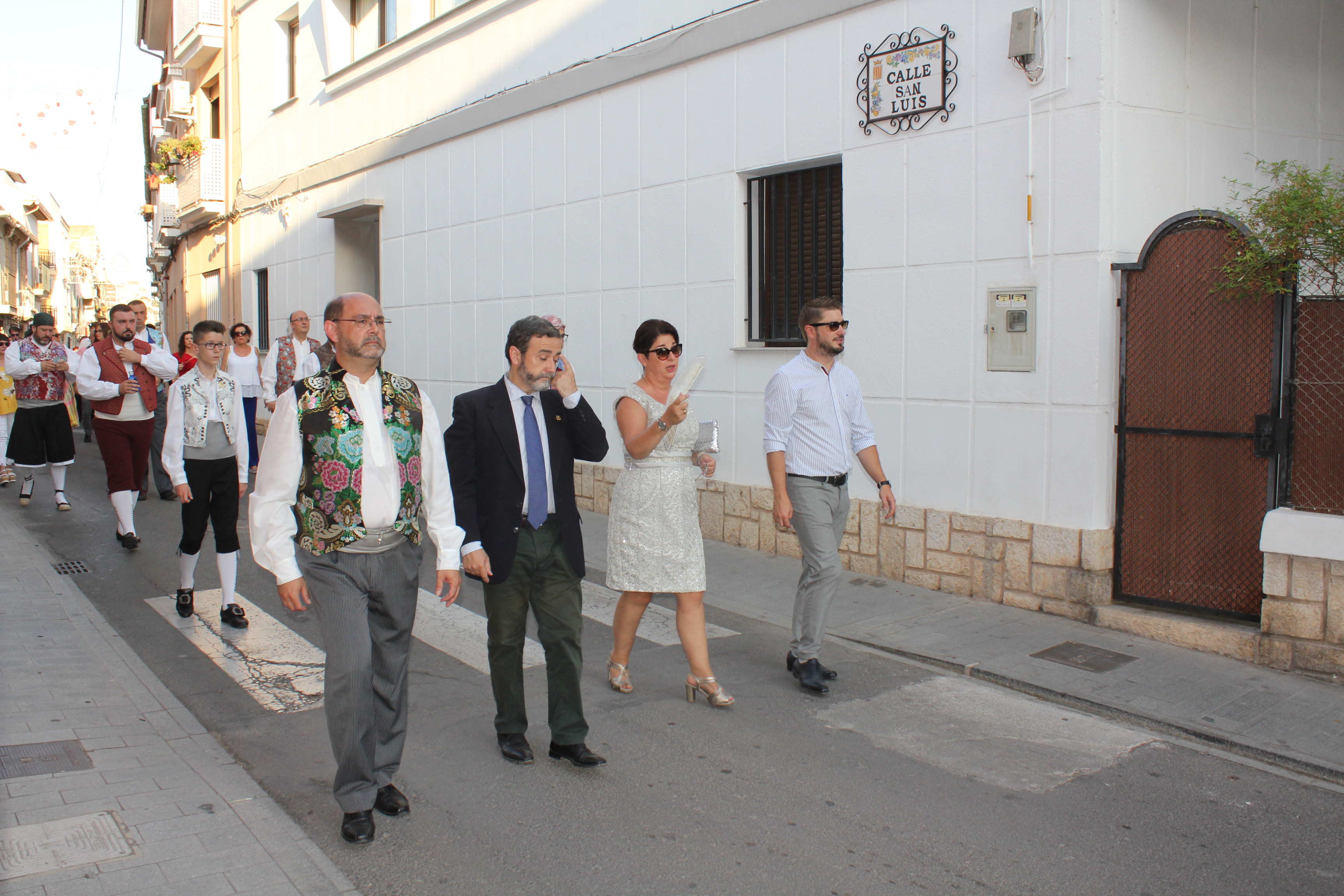 Posteriormente, en pasacalle las falleras, la Junta Local y los responsables políticos desfilaron en pasacalle hasta el Paseo de San Luis.