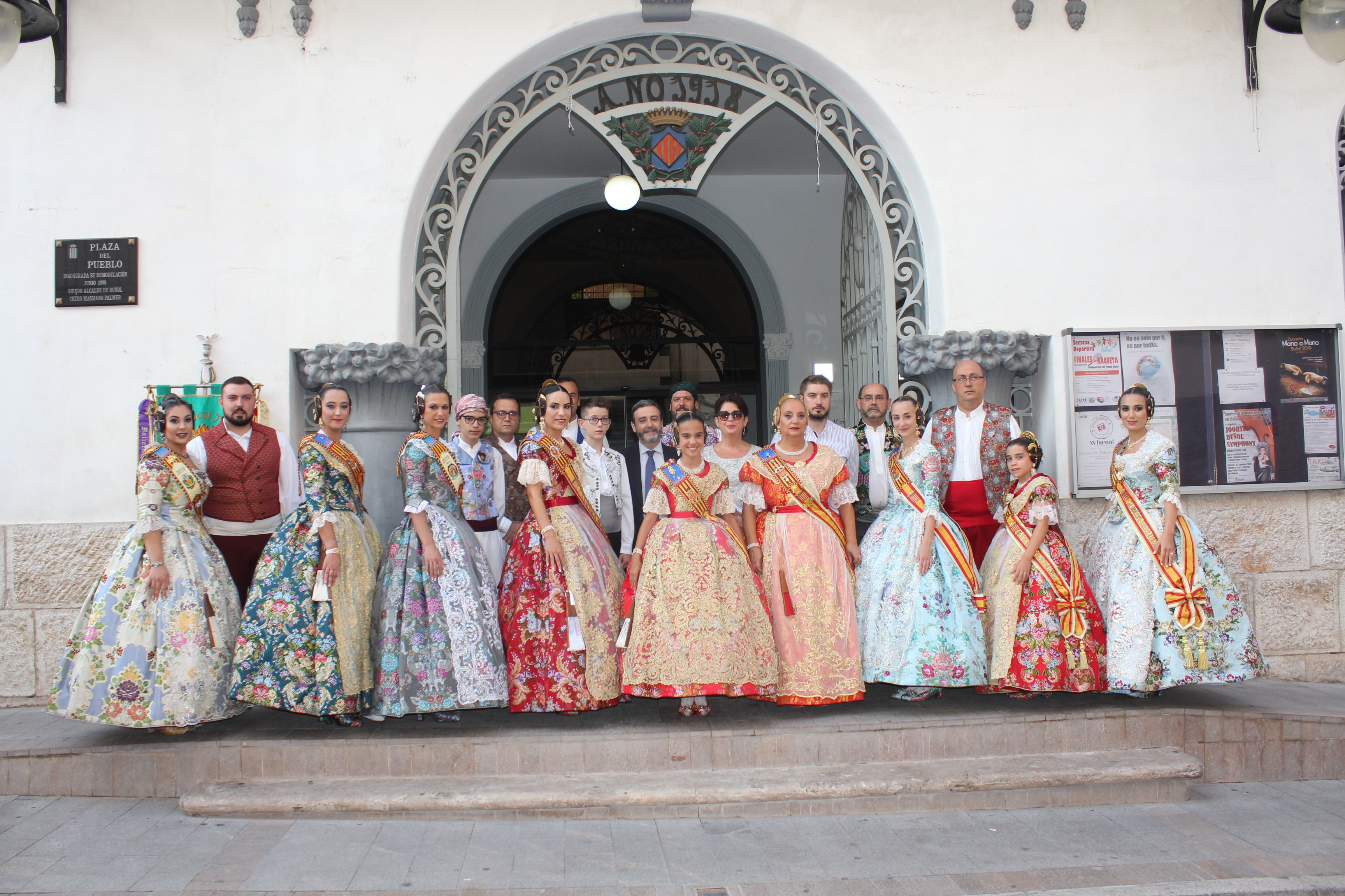 En este acto las falleras estuvieron arropadas por la Reina de la Feria y Fiestas de Buñol, Carmen Marzo Belda y por las representantes, Misses y Reinas, de «La Armónica» y «La Artística».