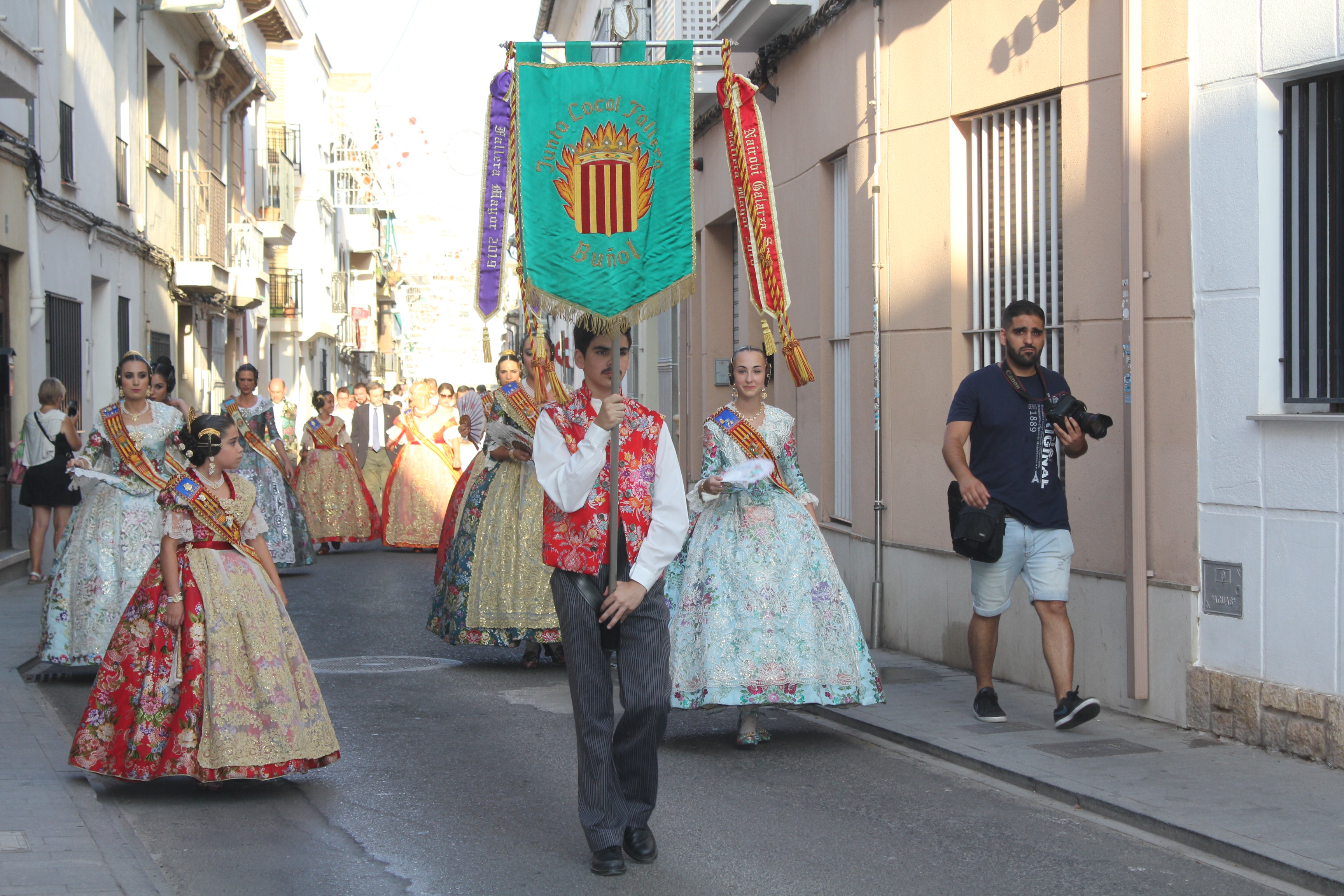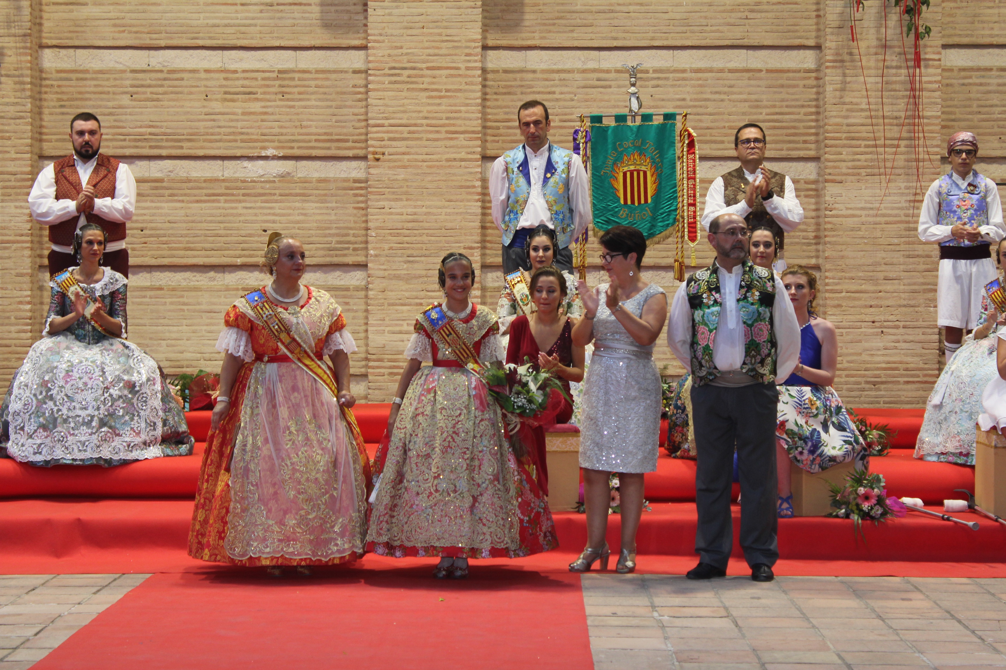 Por su parte, Nuevo Buñol tendrá como Falleras Mayores a la niña Ainhoa Azorín Sánchez y a la señorita Jennífer Laut Rodríguez. La Falla Reyes Católicos y Adyacentes presentó a Laura Gallego Espert, en el año en el que la comisión cumplirá 50 años. Por último, de la Falla Buñol Pueblo salió al escenario la actual Fallera Mayor, Claudia Gasull.