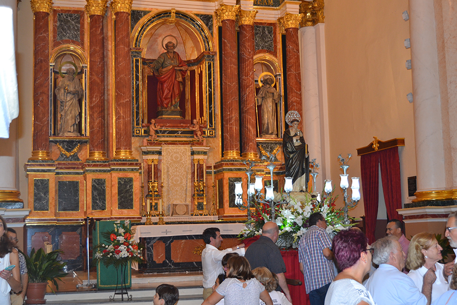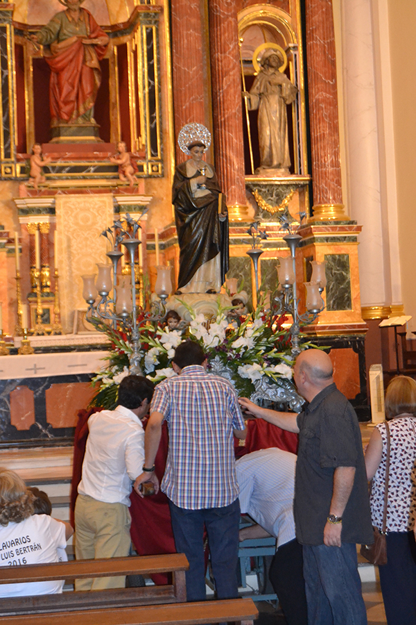 Desde las 21 horas tuvo lugar el traslado del Santo Patrón San Luis Bertrán, desde su ermita hasta la iglesia parrocal de San Pedro Apóstol, con asistencia de la Reina de las Fiestas, su Corte de Honor, autoridades, comisión, Clavarios de San Luis y pueblo en general.