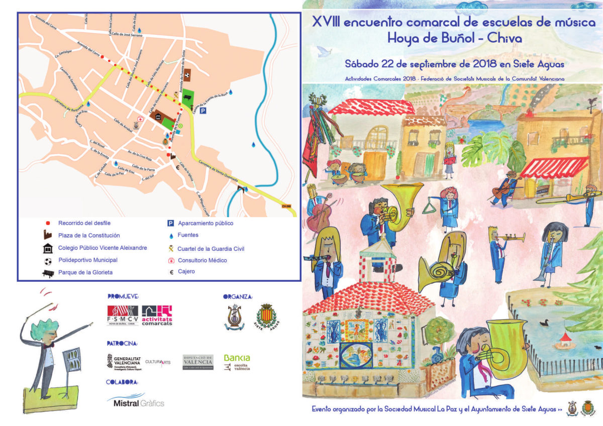 Redacción.- Las Sociedades Musicales de la Hoya de Buñol-Chiva celebrarán el próximo sábado 22 de septiembre el XVIII encuentro comarcal de escuelas de música. Esta actividad, que forma parte de la “Campaña de actividades comarcales” de la Federación de Sociedades Musicales de la Comunidad Valenciana (FSMCV), se realizará este año en Siete Aguas.