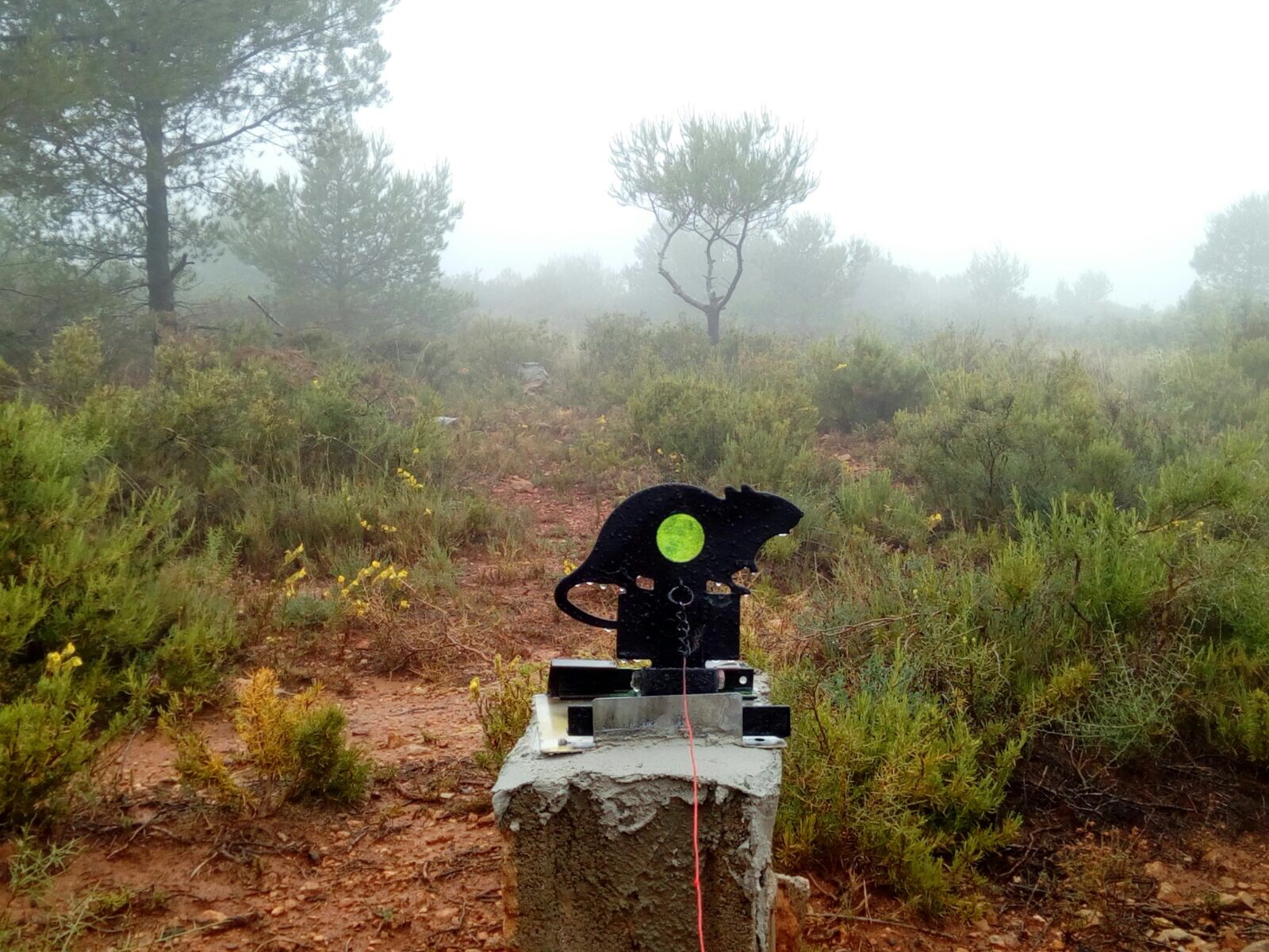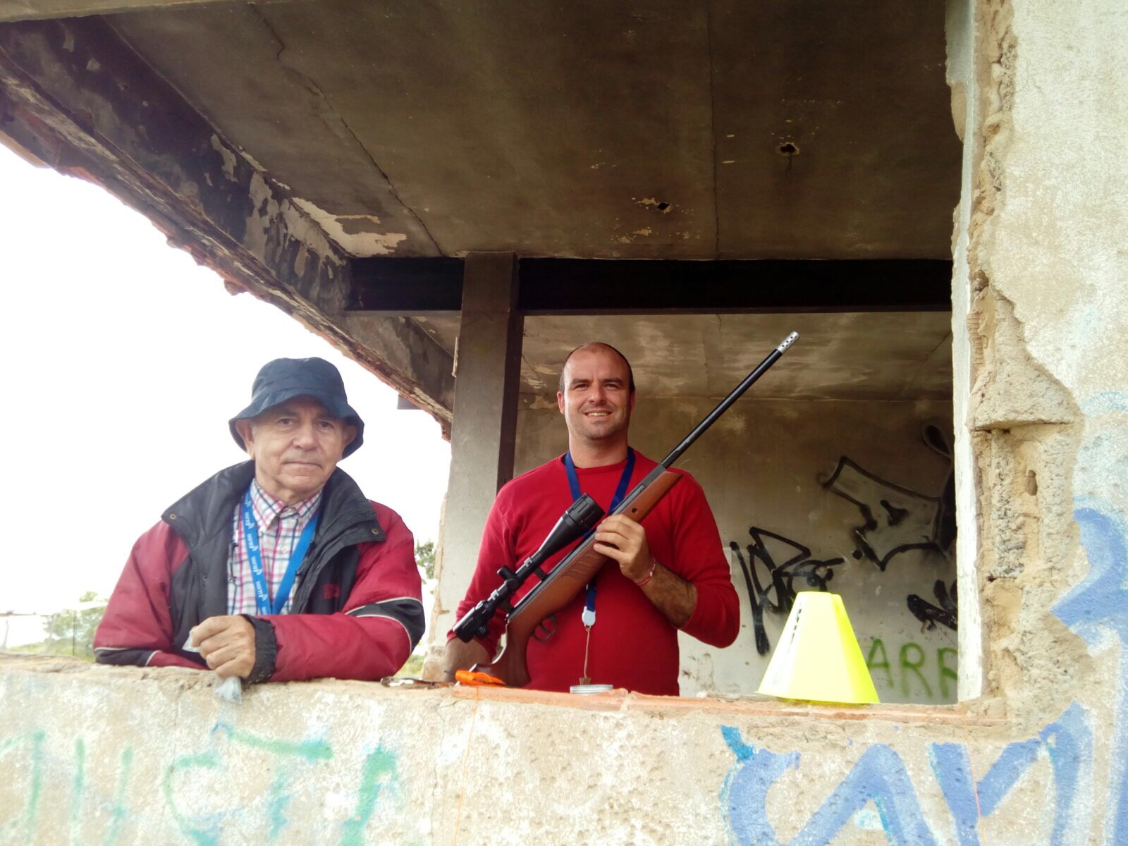 La mañana que anunciaba tormentas fuertes y acompañada de abundante aparato electrico, con temperaturas frescas y viento constante, nos brindó la oportunidad de dar lo mejor de nuestros equipos y de nuestra puntería, desde dentro de la casa que preside el campo de tiro, aunque la lluvia no fue demasiado fuerte, casi siempre estuvo presente durante el curso de la tirada, de esta forma no nos mojamos y pudimos competir. Resaltar que esto fue posible gracias al inmenso esfuerzo realizado anteriormente por varios compañeros, en el que se reparó y selló en la medida de lo posible el techado de la casa, que tenía numerosas goteras. También resaltar que gracias a la construcción de varias calles alternativas para poder tirar desde dentro del cobijo de la casa, se pudieron montar 8 calles de 2 blancos/ratas a 3 vueltas, con un total de 48 blancos posibles.