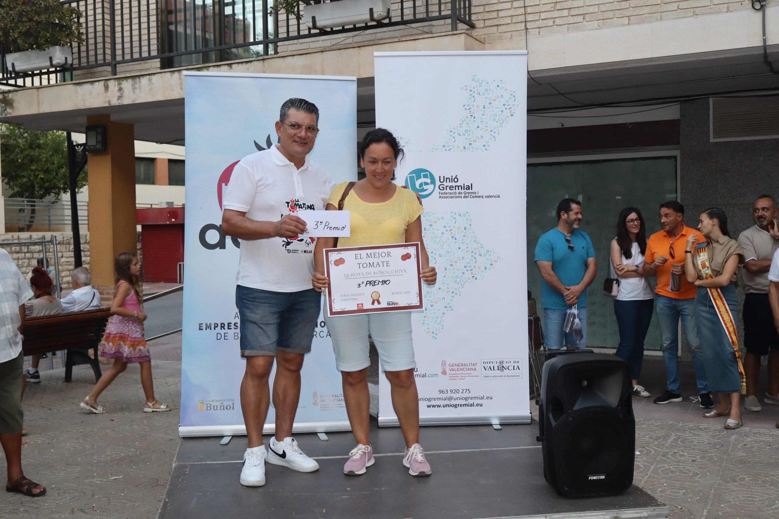 Una vez los 25 participantes se inscribieron, fue el jurado quien fue catando uno a uno los tomates presentados. Después de una larga deliberación, se entregaron tres premios. El tercero fue a parar a Paula Martínez, que se llevó su diploma acreditativo y 100€. El segundo galardón se lo llevó, Jaime Bori Galarza, que recibió 200€ y su diploma. Y el ganador fue Toni Blasco, que logró 400€ y se convirtió en el vencedor de esta edición. Los premios fueron entregados por la alcaldesa de Buñol, Virginia Sanz, por el presiente de Buñol Comercial, Pedro Rubio y por la Reina de la Feria y Fiestas, Celeste Agustina García.