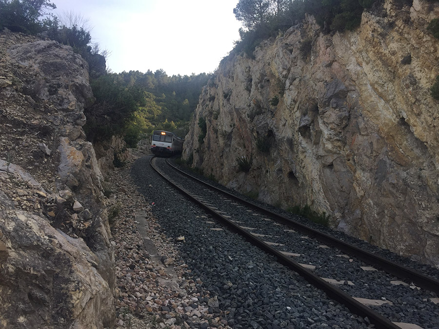 El tren que pasaba por Buñol aproximadamente hacia las 18:20 se ha detenido antes del puente al ver demasiada gente cerca de las vías.
