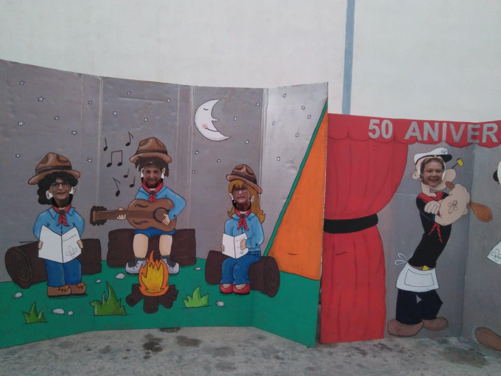 Este Grupo Scout ha preparado su 50 Aniversario con personas voluntarias, todo al detalle, y es de admirar. A cada uno de vosotros, que ha colaborado, Muchas Gracias!!!, sin vosotros esto no hubiera sido posible. Por ello, me gustaría enseñaros, esta buena organización: SCOUTERS (monitores), scouts, antiguos scouts, comité, padres, y comisiones que se han hecho para el aniversario: Decoración (Photocall, carteles…,menchandinsing , esas camisetas tan bonitas , los llaveros mil gracias), cocina (muy bien organizada), intendencia (no ha faltado detalle) comunicación y sonido (buena idea las entrevistas, fue un puntazo, la pantalla, sonido, los actos de bienvenida, el discurso). Gracias por contar conmigo, os llevo en mi corazón.