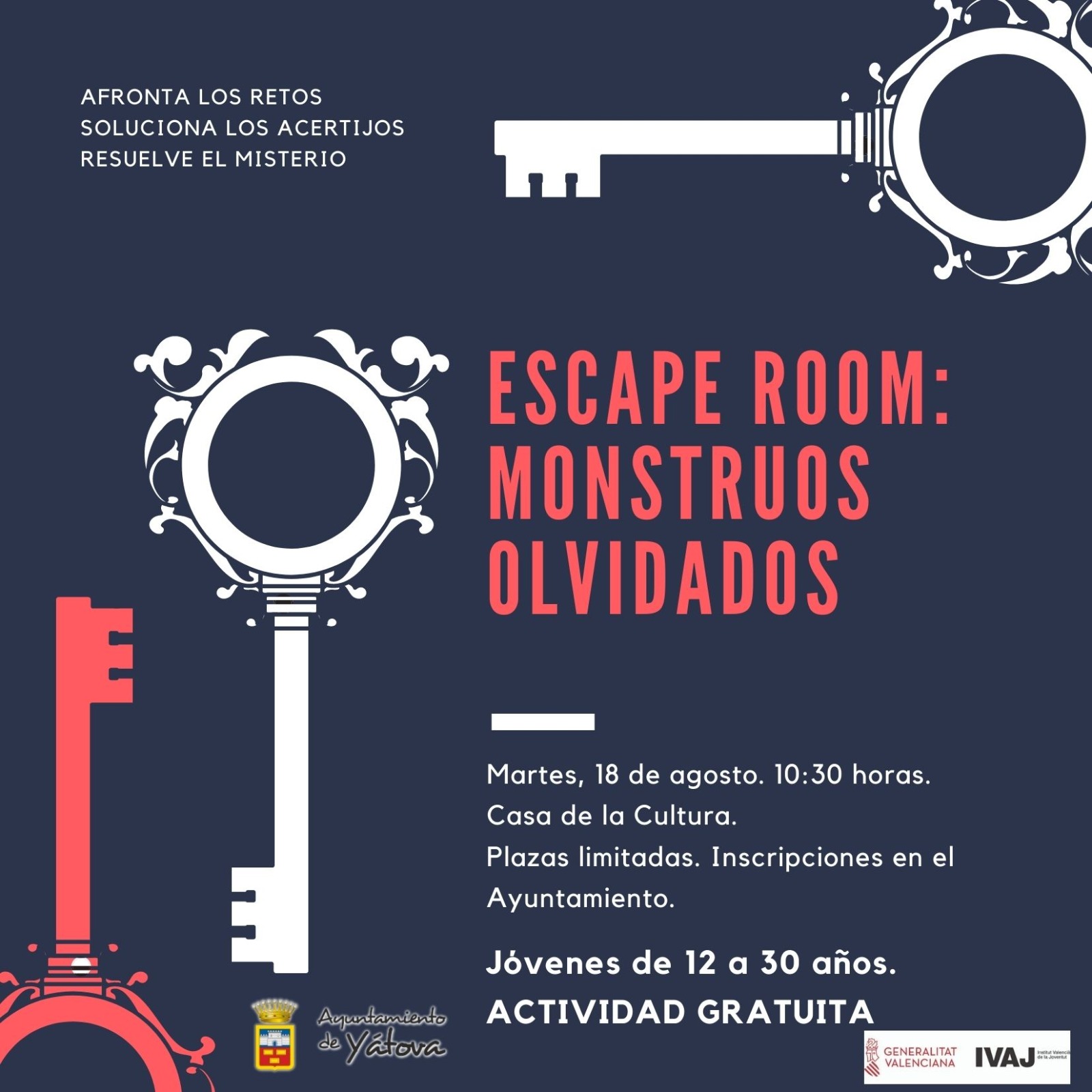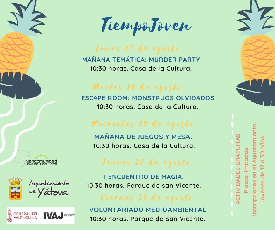 La Casa de la Cultura y el Parque de San Vicente serán los escenarios de estos eventos. Se celebrarán del 17 al 21 de agosto y tendrán un aforo máximo de 15 personas por acto. Estas actividades están enfocadas para jóvenes entre 12 y 30 años, excepto la mañana de juegos de mesa, que es hasta 17 años