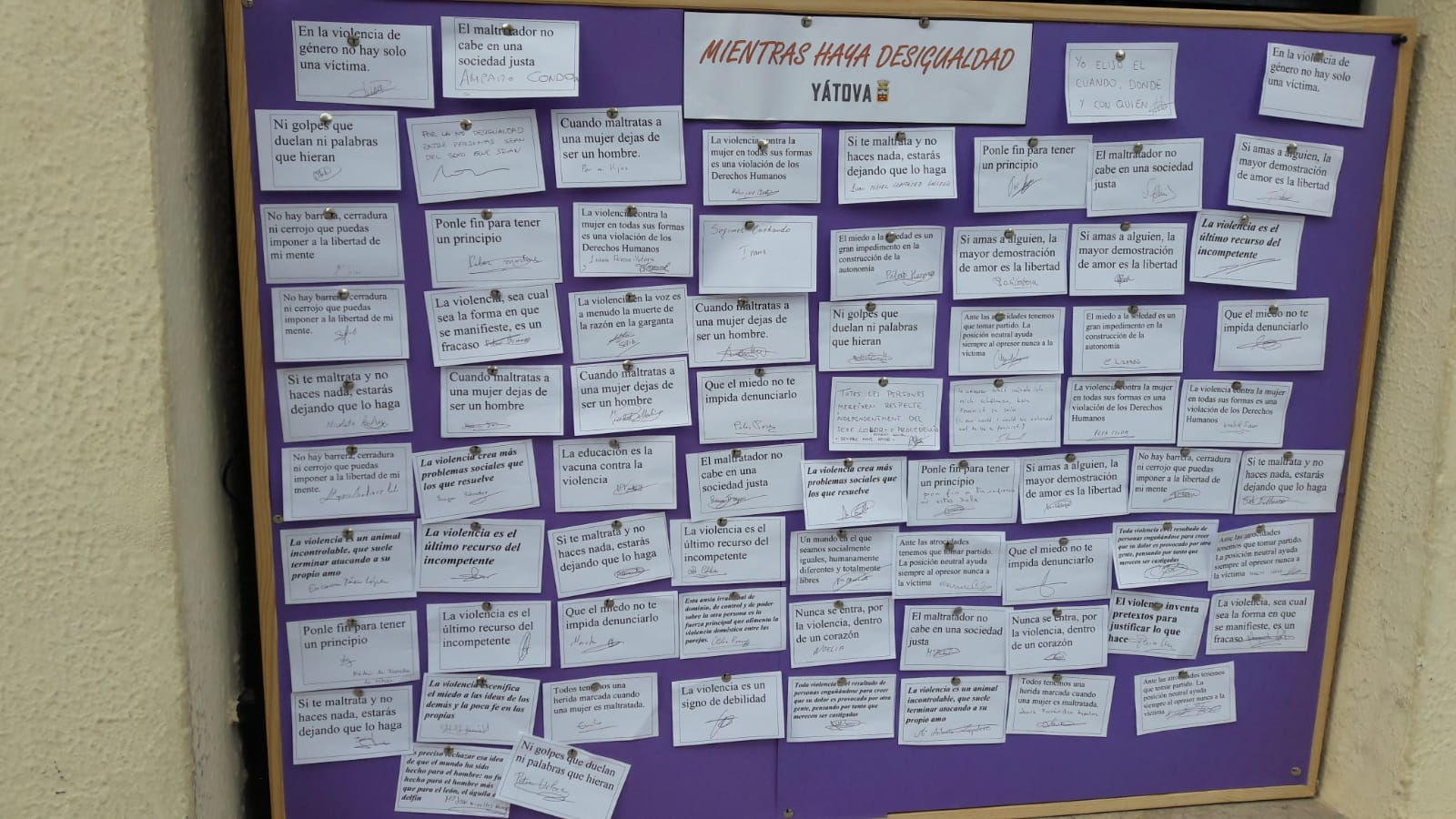 En palabras de la concejala de Salud, Servicios Sociales y Cultura, Pepa Gimeno,“estas campañas han surtido un gran impacto en Yátova con casi la totalidad de los comercios del municipio adscritos al pacto, así como en muchas personas que han querido hacerlo a título individual”. Por su parte, el alcalde, Miguel Tórtola, destaca que “el Ayuntamiento y el vecindario de Yátova se han volcado en realizar una condena unánime a esta violencia y en construir un pueblo más seguro para las mujeres”.