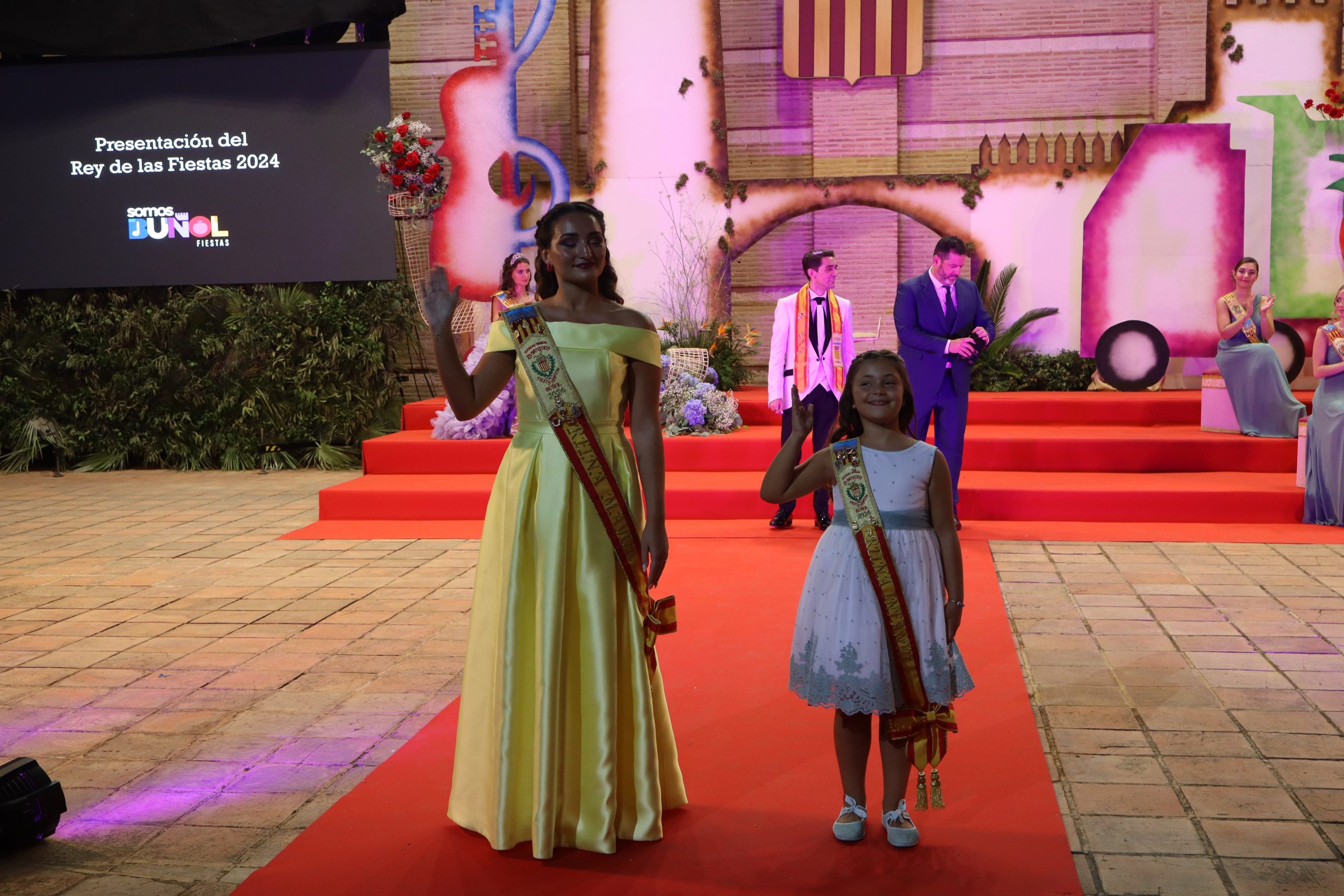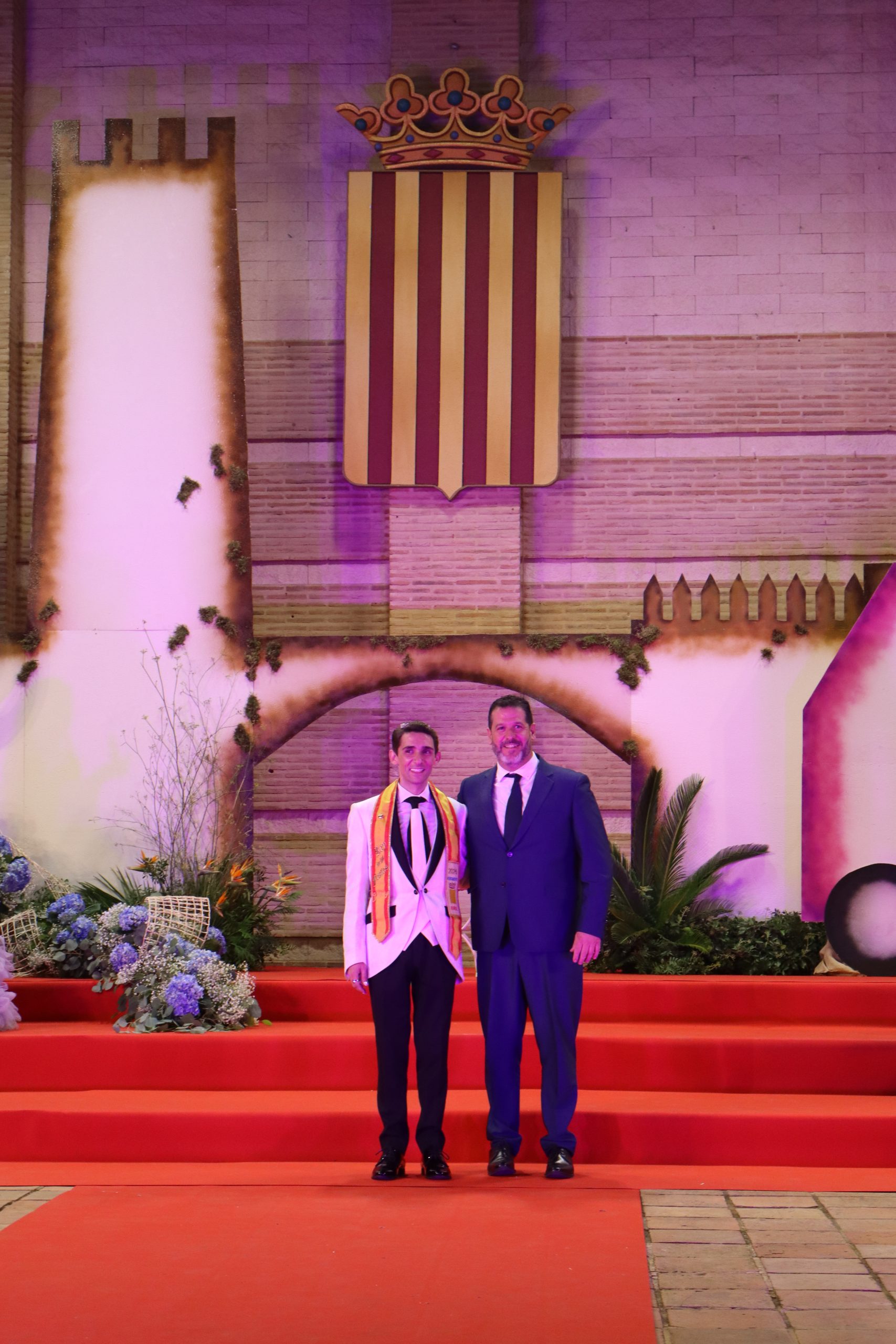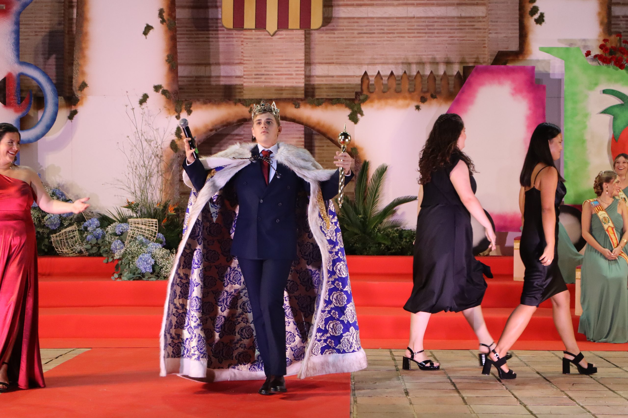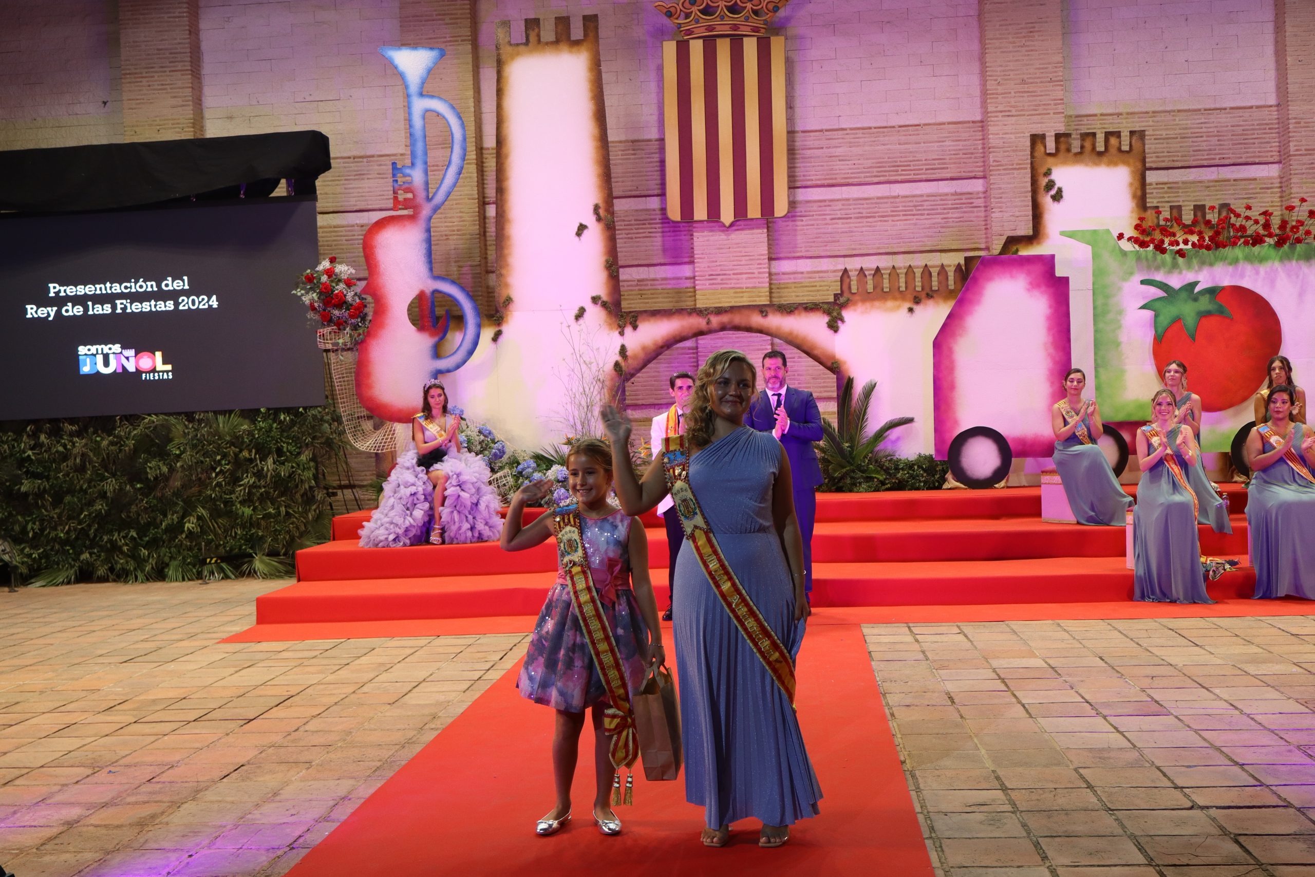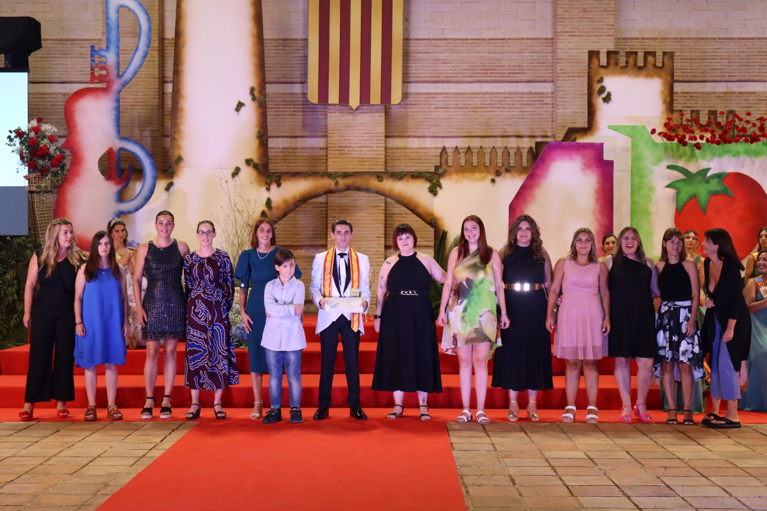 El escenario, se preparó para la ocasión, con los elementos más característicos de las fiestas buñolenses. También ayudó que hubo un maestro de ceremonias que llevó la presentación de manera magistral. Y luego llegaron los momento cumbre. La emotiva despedida de la Reina saliente, Celeste Agustina, que dedicó unas preciosas palabras al abarrotado auditorio. Y luego vino el momento que todos estaban esperando, la bajada por las escaleras de Yeray acompañado de su madre. Fue una bajada larga, intensa, llena de emoción y sentimiento y que estuvo en todo momento acompañada por el aplauso unánime del público. Yeray llegó al escenario y el aplauso se tornó todavía mas intenso y en su cara se veía felicidad y mucha emoción. El protagonista pronunció su primer discurso a las y los vecinos, en el que agradeció el apoyo de su familia y de su eterna amiga Clara Zanón Andrés, pieza fundamental en este paso.