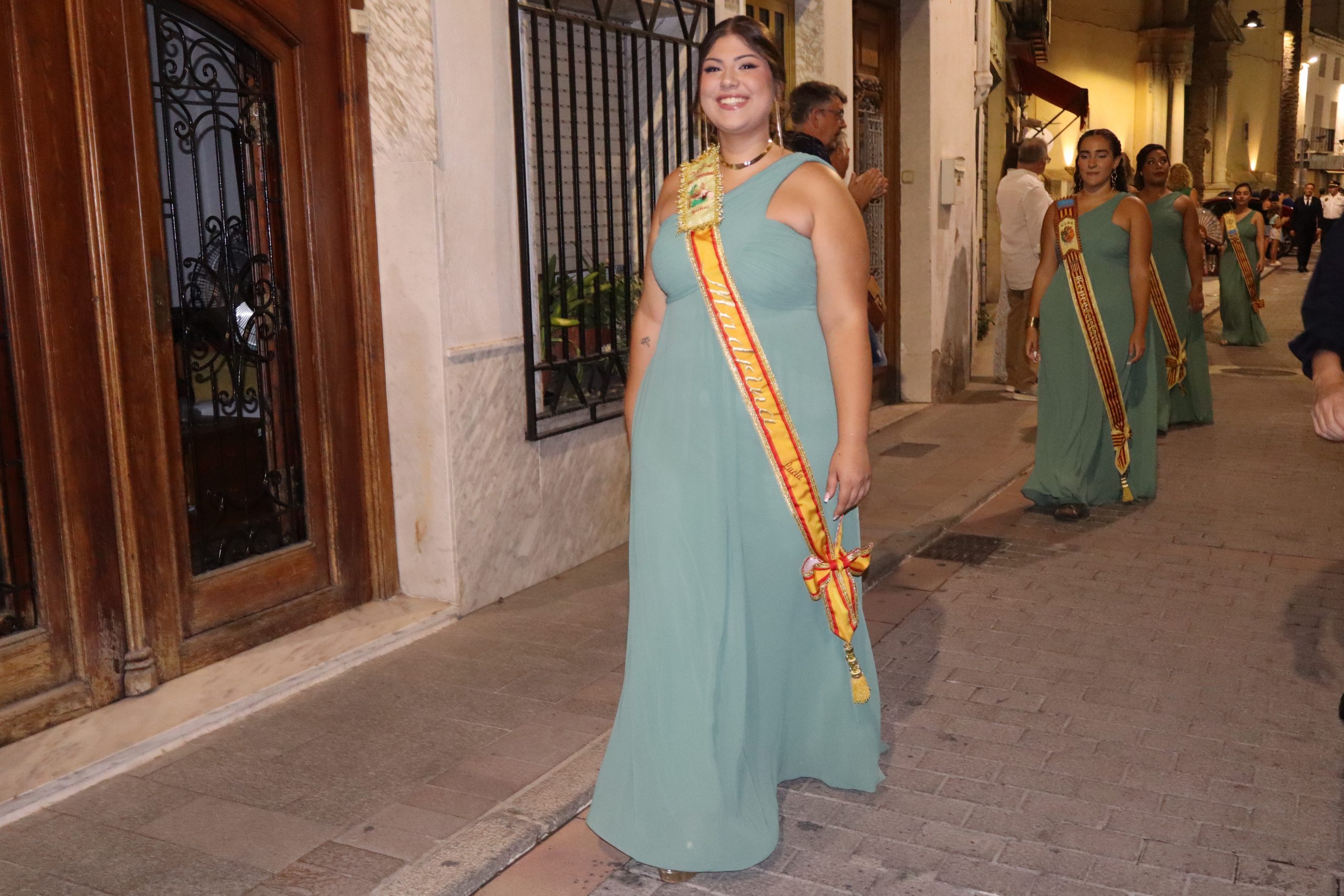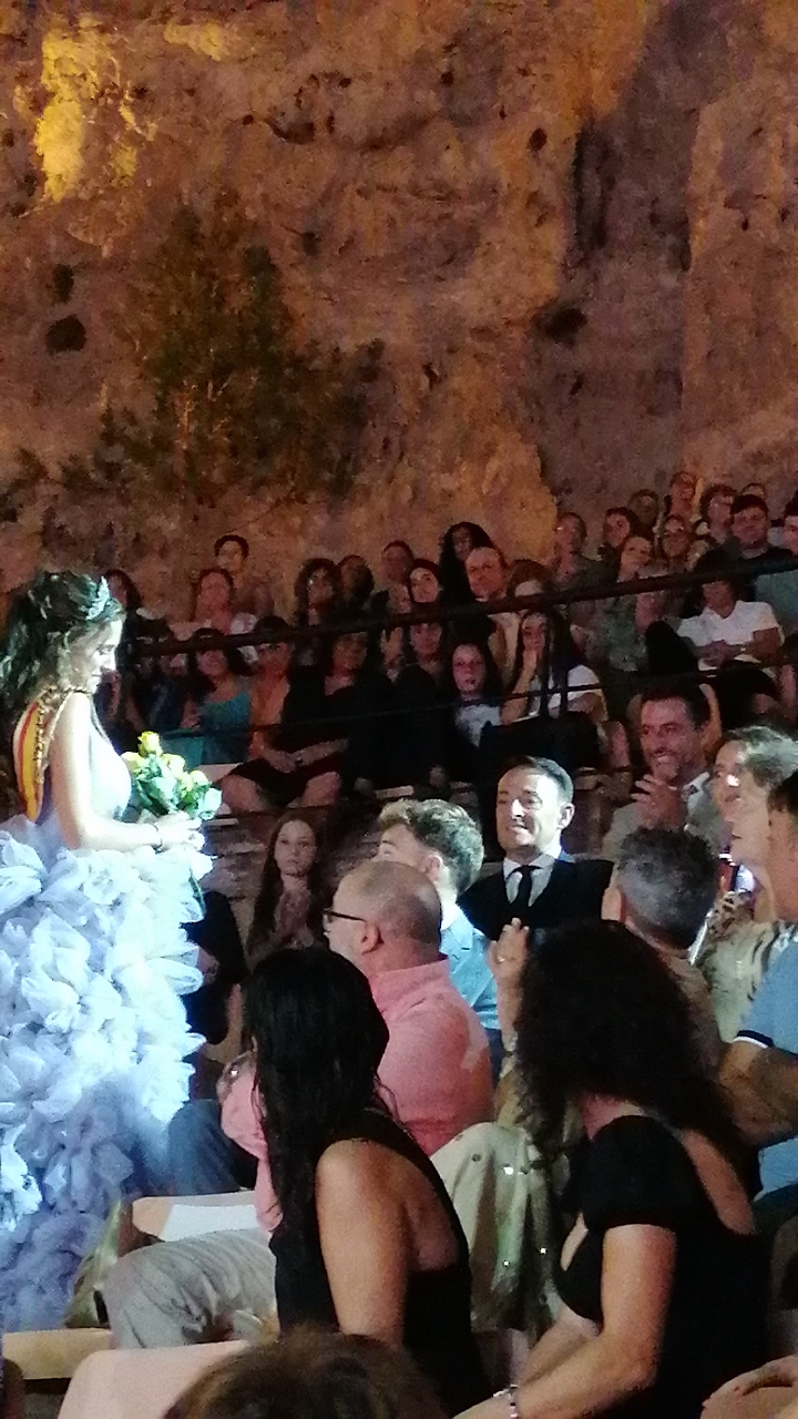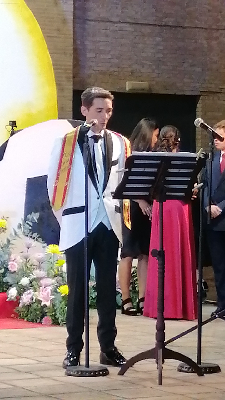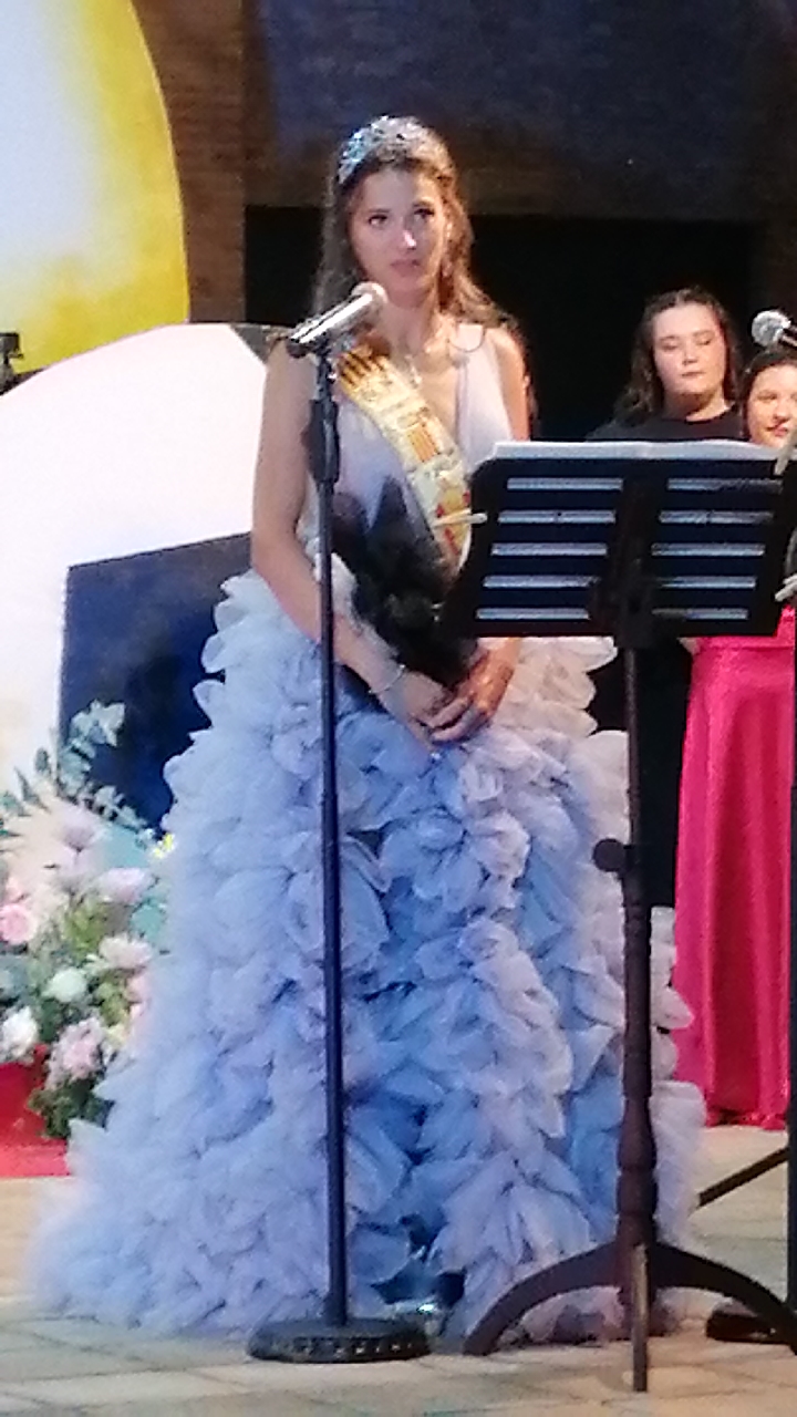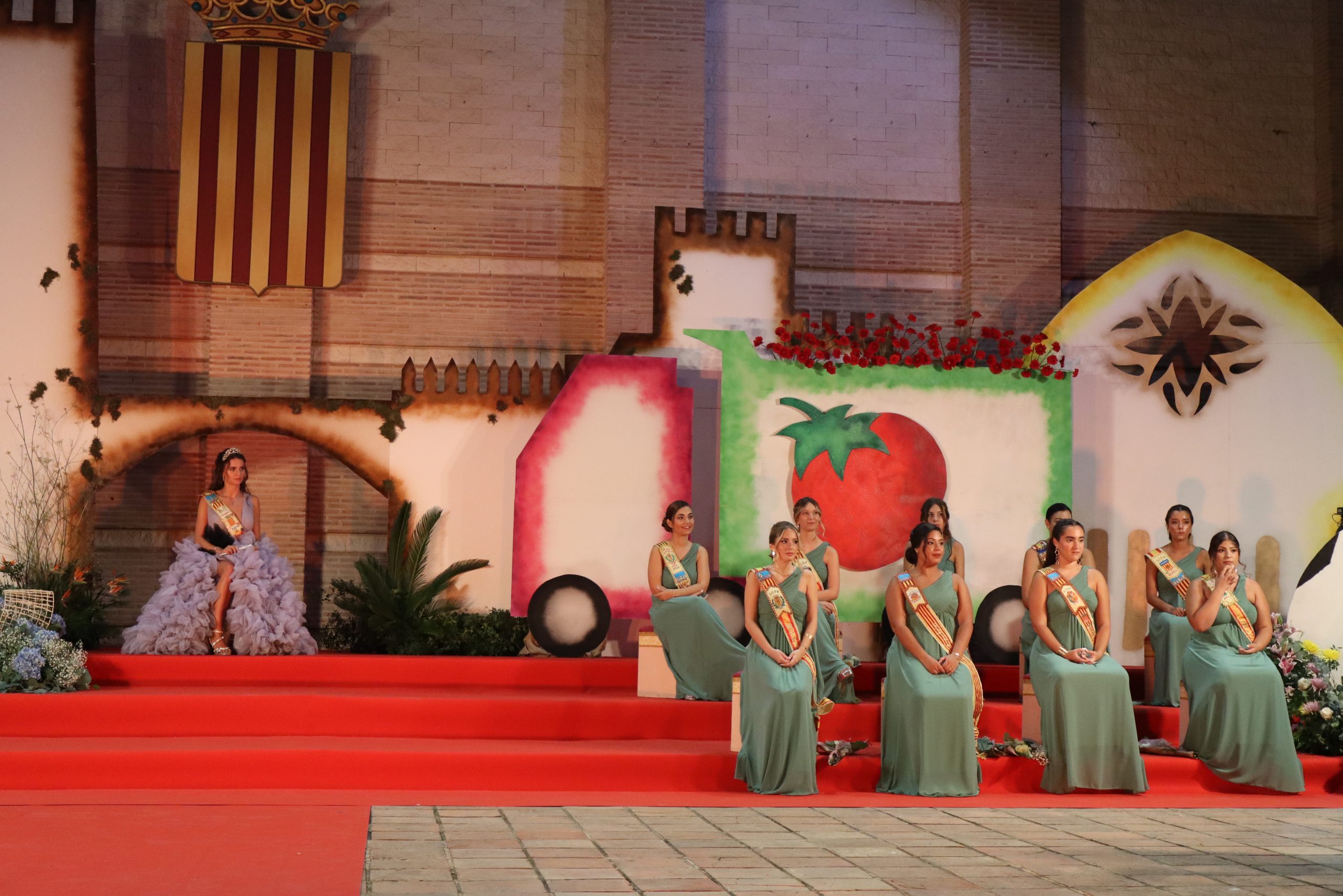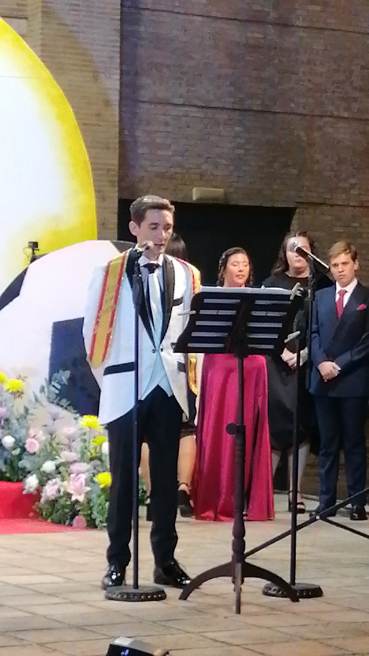 El escenario, se preparó para la ocasión, con los elementos más característicos de las fiestas buñolenses. También ayudó que hubo un maestro de ceremonias que llevó la presentación de manera magistral. Y luego llegaron los momento cumbre. La emotiva despedida de la Reina saliente, Celeste Agustina, que dedicó unas preciosas palabras al abarrotado auditorio. Y luego vino el momento que todos estaban esperando, la bajada por las escaleras de Yeray acompañado de su madre. Fue una bajada larga, intensa, llena de emoción y sentimiento y que estuvo en todo momento acompañada por el aplauso unánime del público. Yeray llegó al escenario y el aplauso se tornó todavía mas intenso y en su cara se veía felicidad y mucha emoción. El protagonista pronunció su primer discurso a las y los vecinos, en el que agradeció el apoyo de su familia y de su eterna amiga Clara Zanón Andrés, pieza fundamental en este paso.